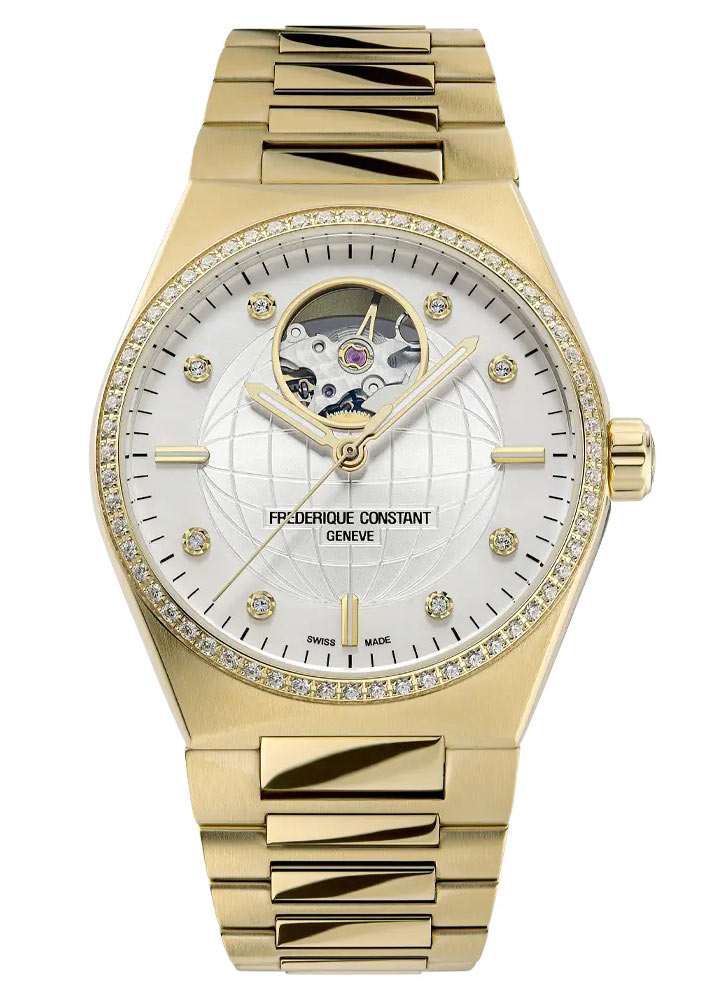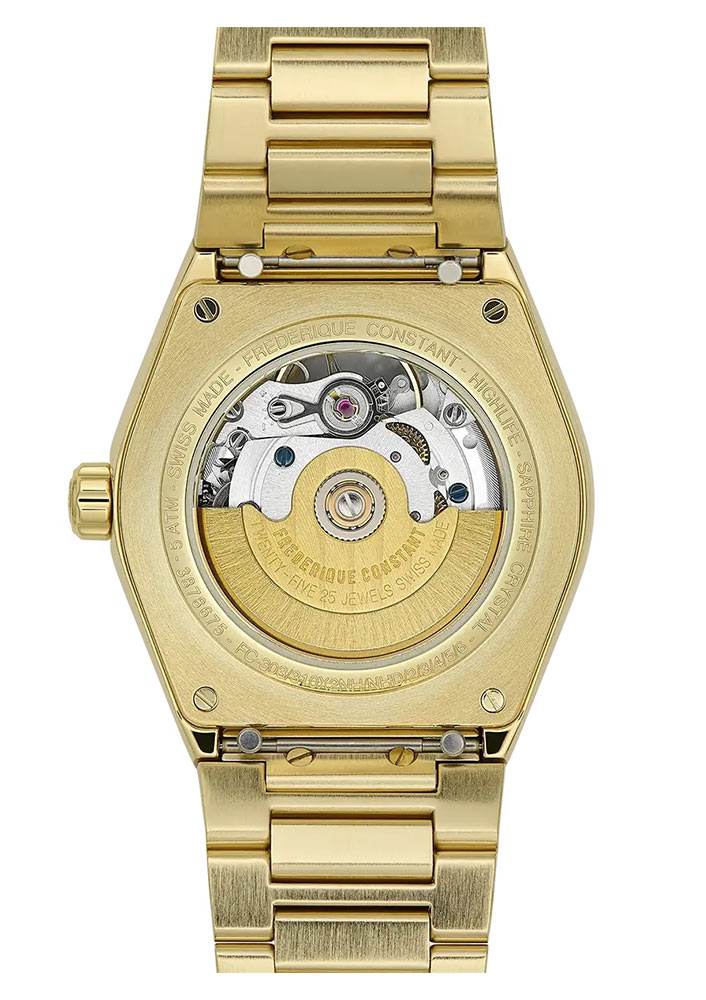 Model FC310MPWD2NHD5B byl vytvořen speciálně pro moderní ženy, které si vždy chtějí užít ladnost a eleganci. Pozlacené hodinky Frederique Constant jsou dostupné ve velikosti 34 mm s náramkem. Na lunetě pouzdra je zasazeno až 60 lesklých diamantů. Hodinky ve zlaté barvě zaujmou svým leskem a precizností zpracování. Na zadní straně je krytka, která se připevňuje čtyřmi šrouby. Jeho průhledné okénko umožňuje obdivovat originální automatický mechanismus Frederique Constant FC-310 s rezervou chodu až 38 hodin. Je příkladem švýcarské kvality a preciznosti. Hodinky s plnou rezervou chodu umožňují přestávku v používání po dobu asi dvou dnů bez obav z zastavení mechanismu.