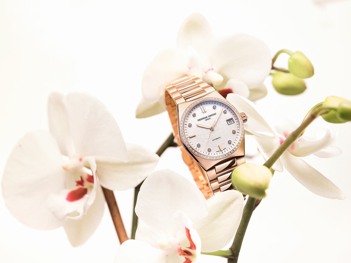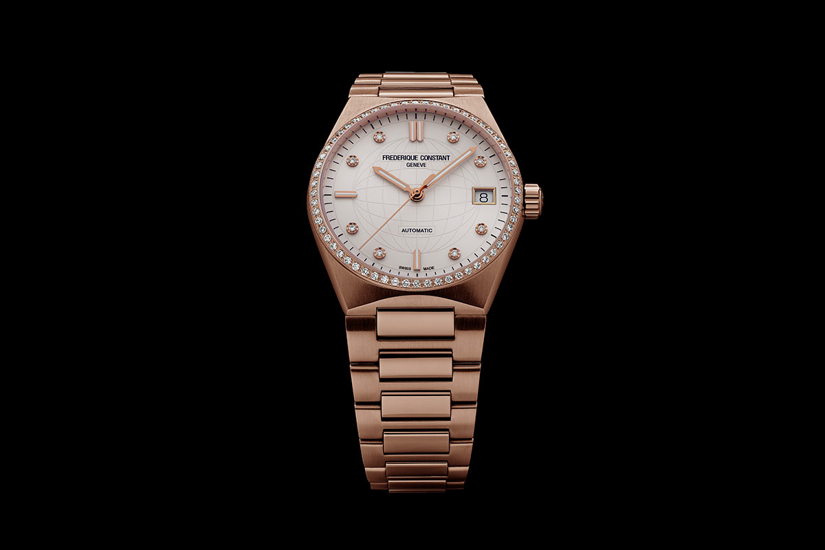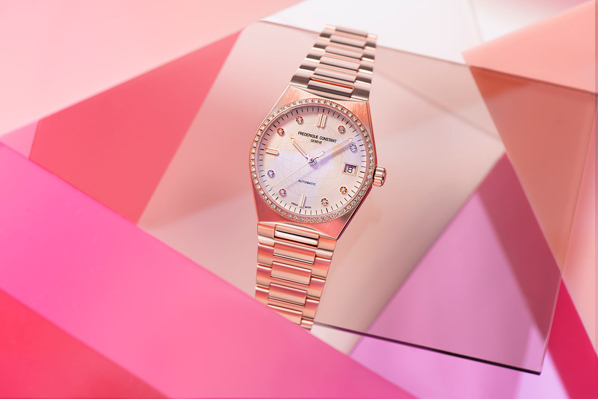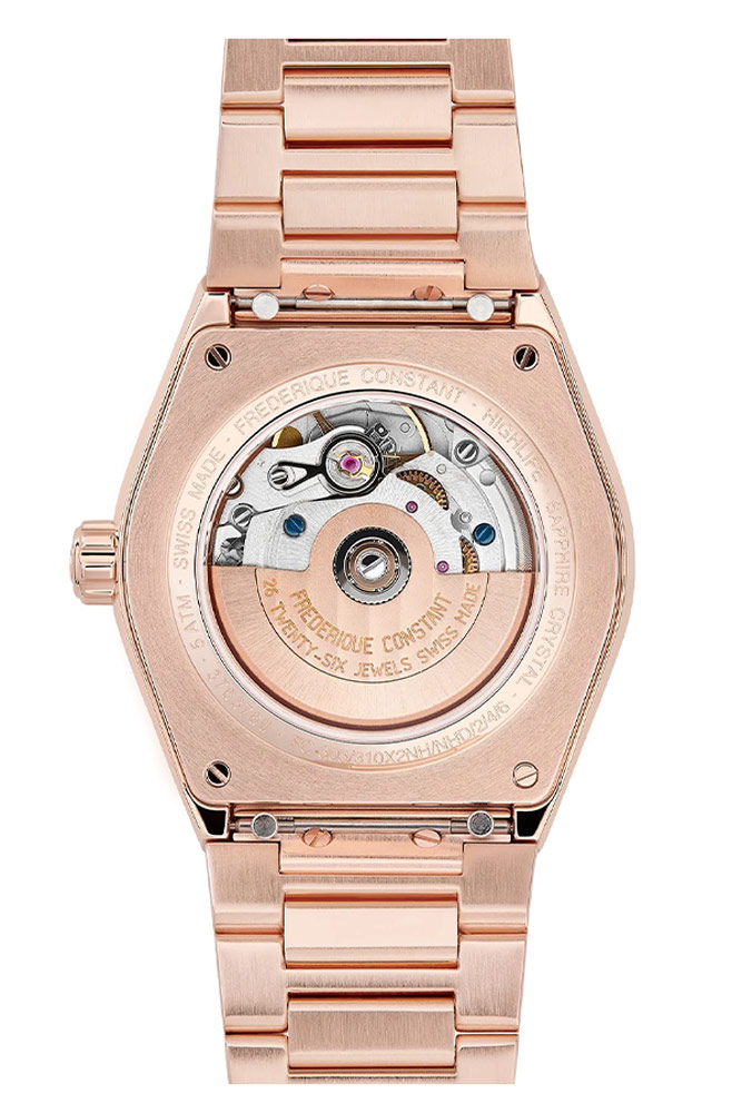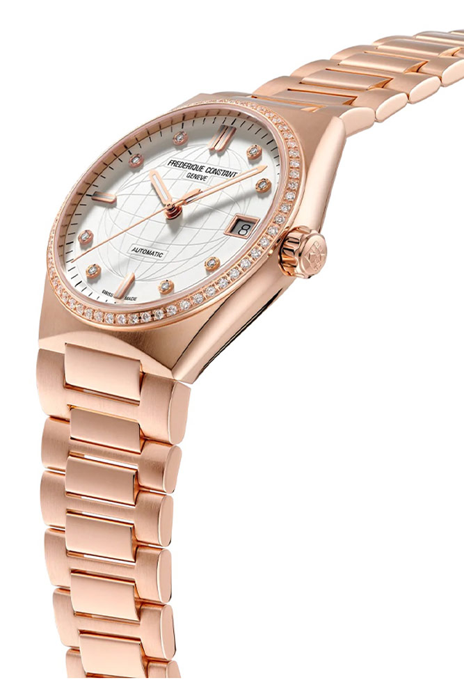 Highlife Ladies Automatic je dokonalou rovnováhou mezi klasikou, sportem a moderností. V závislosti na individuálních preferencích jej lze také přizpůsobit výměnou Originního náramku za gumový řemínek dodávaný s hodinkami. Okouzlující verze hodinek, která je kompletně pozlacená růžovým zlatem a je dodávána s extra růžovým gumovým páskem. Dívčí a módní hodinky doplněné diamantovou lunetou plně zachycují ducha dokonalosti a sofistikovanosti, který je charakteristický pro ženevského hodináře.