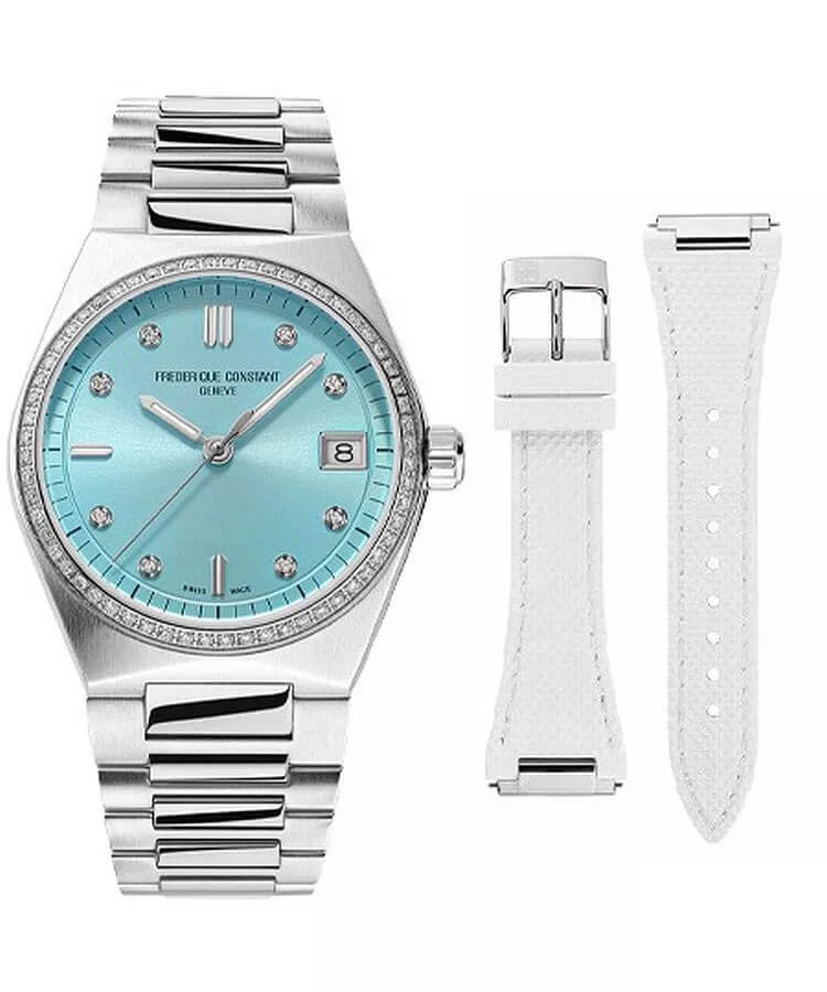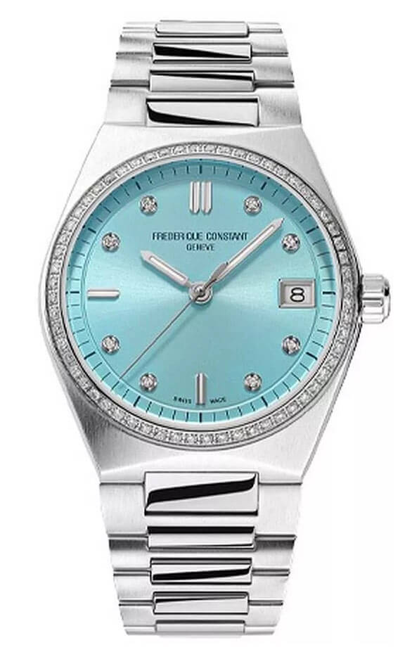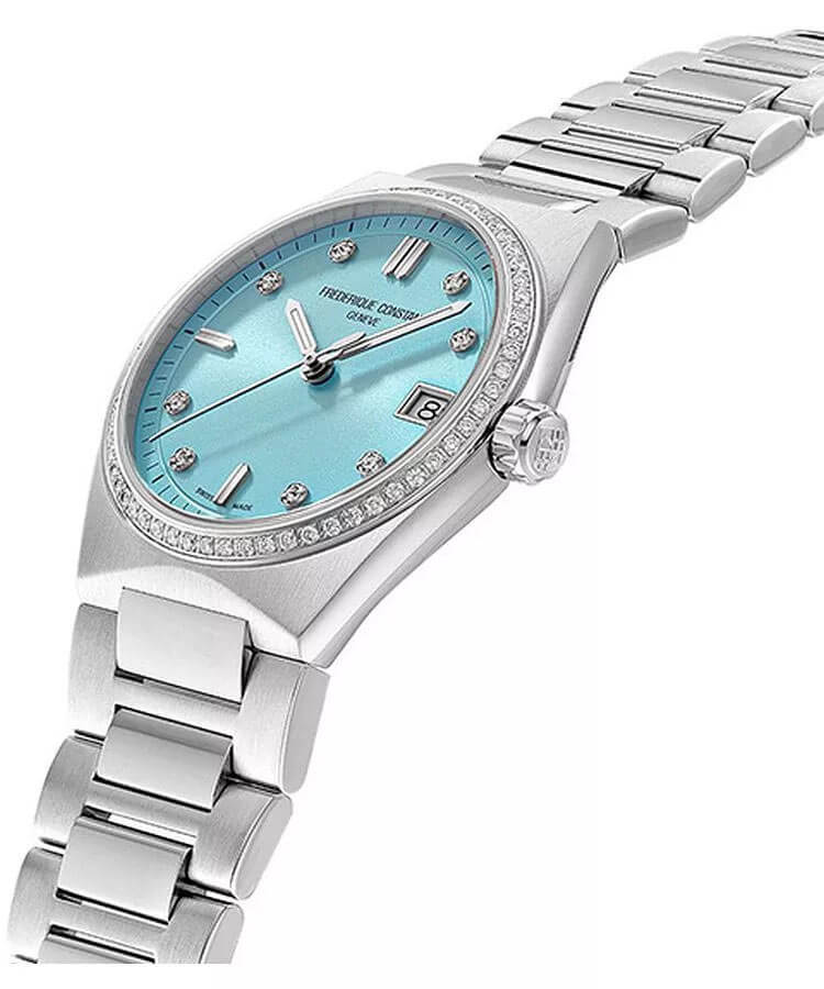 Hodinky Frederique Constant Highlife Diamonds FC240LBD2NHD6B s diamanty vynikají dokonalou kvalitou zpracování, přičemž jsou vyrobeny z odolné ušlechtilé oceli. Jejich pevný náramek s motýlkovou sponou zajišťuje pohodlí při nošení. Bezel zdobený diamanty přitahuje pohledy a podtrhuje luxusní charakter hodinek. Pod tvrdým, proti poškrábání odolným safírovým sklem se nachází sluneční, světle modrý ciferník, zdobený jemnými detaily, které mu dodávají jedinečný vzhled. Osm třpytivých diamantů zdobí hodinové indexy a datumovka zvyšuje funkčnost tohoto časomíry. Tento nadčasový model harmonicky spojuje klasický design s moderním akcentem, představující dokonalou volbu pro ženy oceňující jemnost a preciznost. Švýcarský mechanizmus garantuje spolehlivost, zatímco elegantní forma hodinek podtrhuje výjimečný styl jejich majitelky.