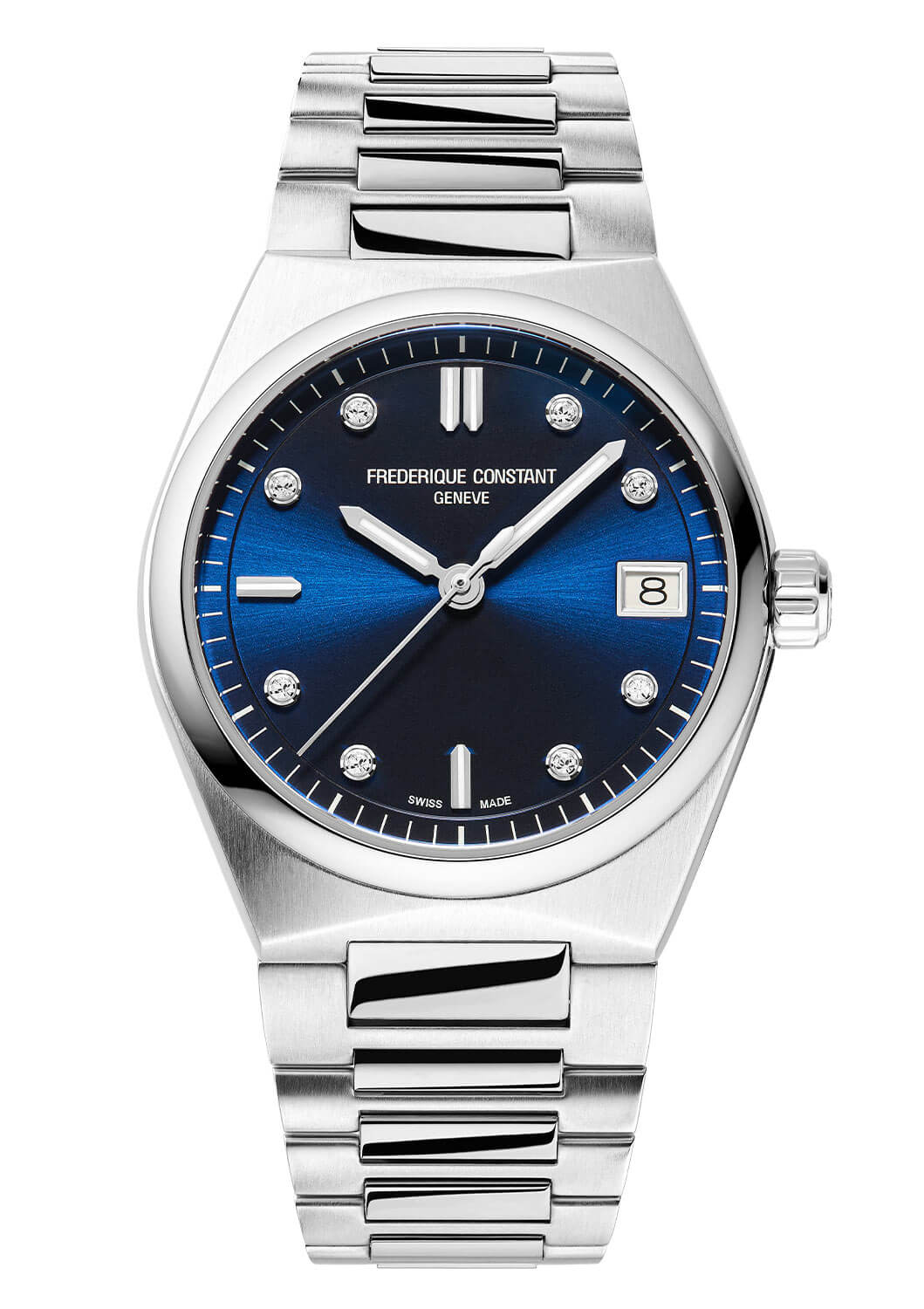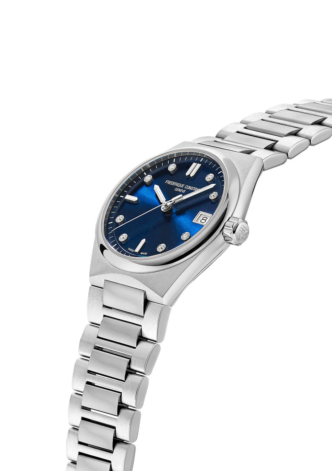Hodinky Frederique Constant FC240ND2NH26B s diamanty vynikají vynikající kvalitou zpracování, protože jsou vyrobeny z odolné ušlechtilé oceli. Jejich pevný náramek s motýlkovou sponou zajišťuje pohodlí při nošenía. Lesklá luneta přitahuje pozornost a podtrhuje luxusní charakter hodinek. Pod tvrdým, na poškrábání odolným safírovým sklem se nachází sluneční, modrý ciferník zdobený jemnými detaily, které mu dodávají výjimečný vzhled. Osm třpytivých diamantů zdobí celé hodinové značky a datumovka zvyšuje funkčnost tohoto časoměru. Jde o nadčasový model, který harmonicky spojuje klasický design s moderním akcentem, což z něj činí dokonalou volbu pro ženy, které si cení jemnosti a přesnosti. Švýcarský strojek zaručuje spolehlivost a elegantní forma hodinek podtrhuje jedinečný styl jejich majitelky.