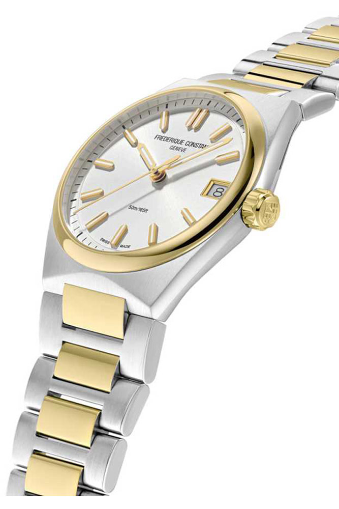 Současné křivky, které jdou ruku v ruce s duchem doby, se nevzdávají šiku, který je jedním ze základů společnosti ze Ženevy. Výše uvedený model odráží harmonii mezi klasikou a modernou. Klasicky vyvážený a moderně tvarovaný, odrážející záři zítřejších paprsků, je určen nejen pro elitní fajnšmekry. Pozlacené dámské hodinky Frederique Constant naplňují hlavní poslání značky, která je vedena vášní vytvářet sofistikované hodinky s vysoce kvalitním zpracováním za výhodnou cenu. Highlife výtvory, nyní také v quartz verzi, mají za cíl vylepšit a odhalit osobnost žen, které z nich dělají své věrné společnice. Vynikající odolnost nerezové oceli a safírového skla, dokonalý půvab lesklých zlatých povrchů, nadčasový design a precizní švýcarský Machineek osloví každého milovníka elegance a klasiky vylepšené v souladu s tradičními hodnotami.