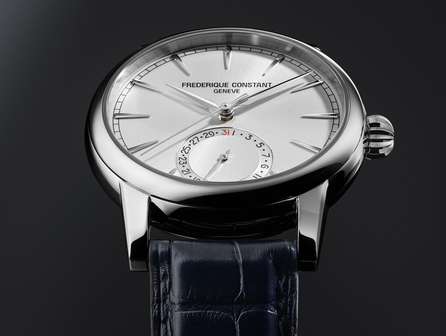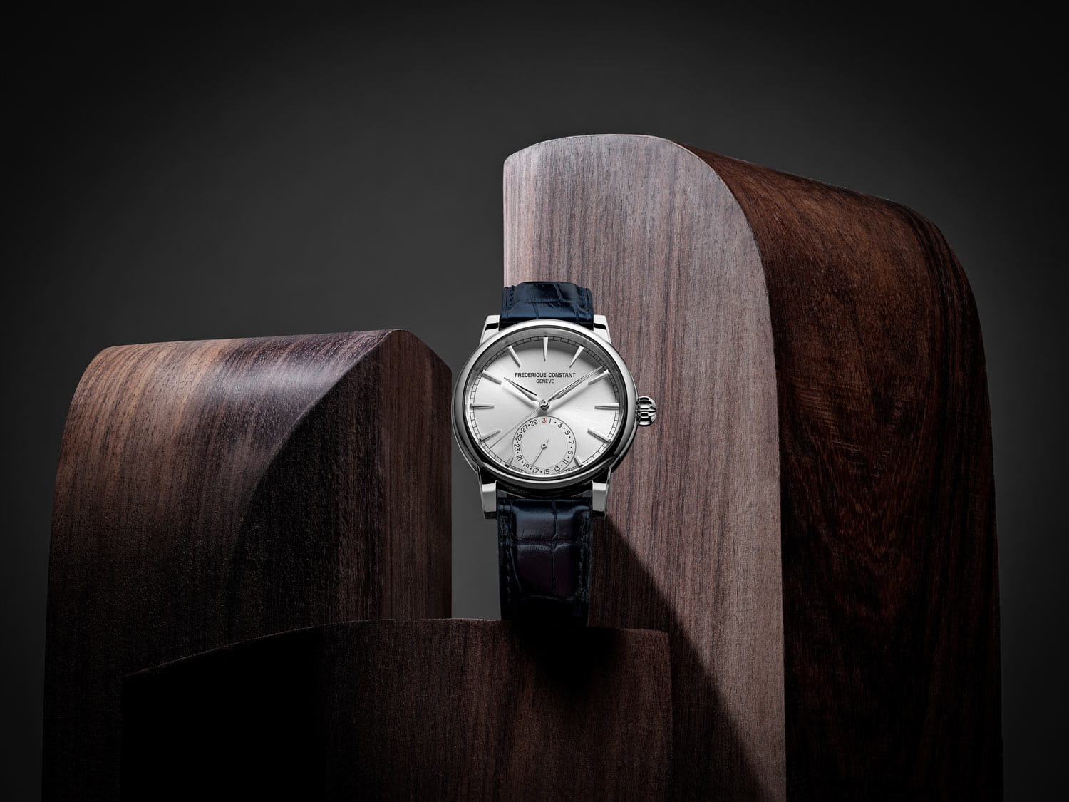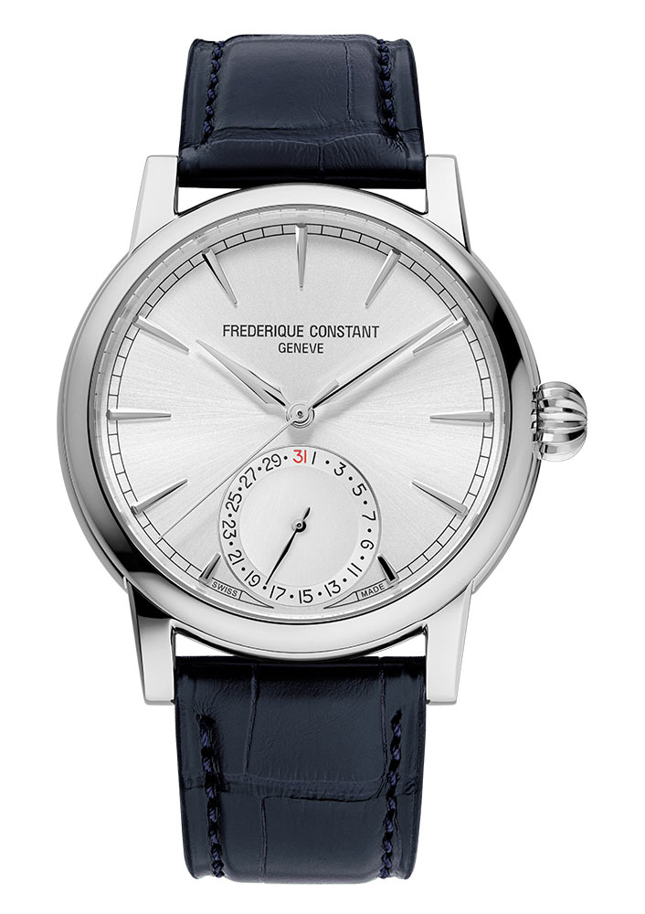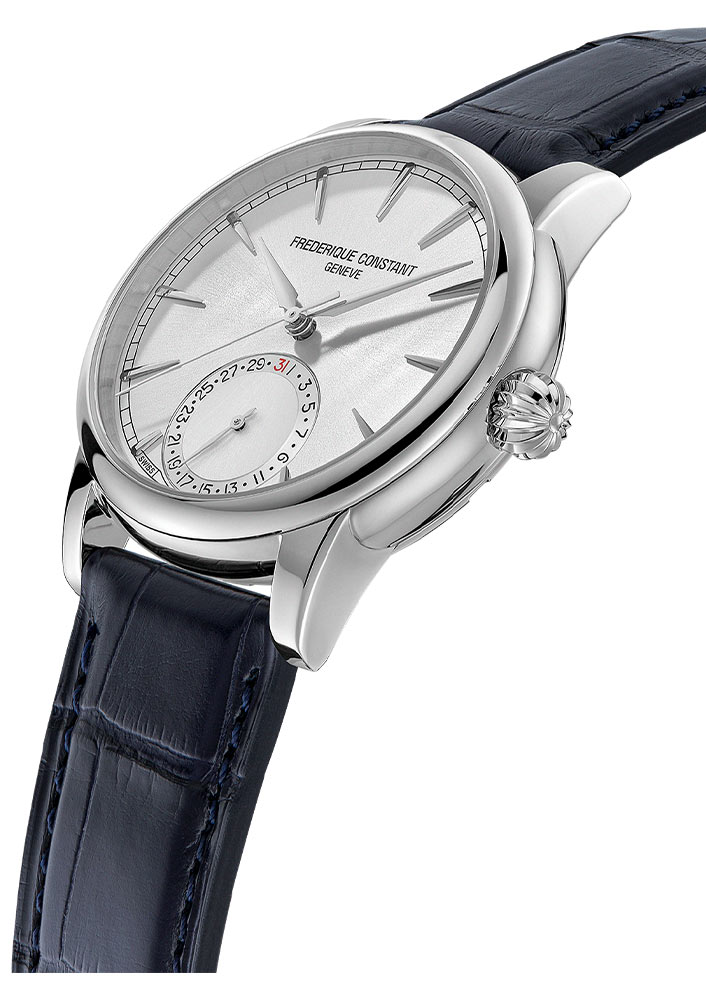 Elegantní pouzdro z nerezové oceli, zmenšené na 40 mm, přináší zpět klasický design v moderní podobě. Navzdory jemnému zmenšení velikosti pouzdra působí číselník výrazněji než kdykoli předtím, rovnoměrně rozptyluje světlo a zdůrazňuje jeho rafinovaný charakter. Ciferník sunburst zdobí štíhlé diamantové indexy a minutová stopa „Chemin de Fer“, která hodinkám dodává jemnost a jedinečné kouzlo. Elegantní stříbrný ciferník s datumovkou na šesté hodině chrání safírové sklíčko extrémně odolné proti poškrábání. Pánské hodinky Frederique Constant jsou zavěšeny na měkkém a lehkém řemínku z exotické modré kůže.