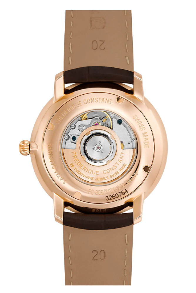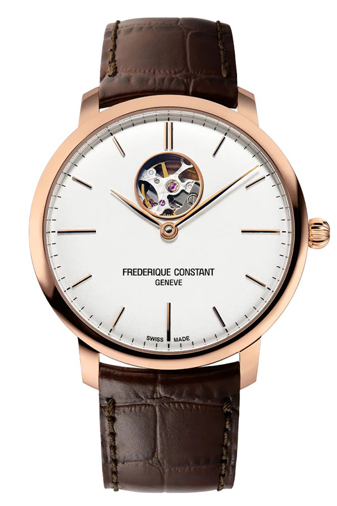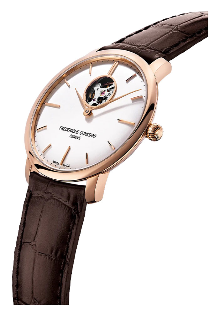 Švýcarský výrobce hodinek Frederique Constant obohatil a posílil kolekci Slimline, která se v posledních letech stala ikonou značky, o nový model Slimline Auto Heart Beat. Absolutní elegance hodinek je obsažena v jejich čistých liniích a kvalitě zpracování, jednoho z nejtenčích modelů Frederique Constant. 40mm pouzdro, dostupné v leštěné nerezové oceli s luxusním růžovým zlatem, je výrazně mužné a bude vypadat stylově na zápěstí každého muže. V hodinkách Frederique Constant Slimline Auto Heart Beat si všimneme kombinace klasického a inovativního, především krásně zdobeného automatického Machineku viditelného speciálním okénkem, otvorem v ciferníku na 12. hodině a ze spodní části hodinek skrz skleněné pouzdro. Extrémně ploché pouzdro a automatický Machineek umožňují, aby se hodinky elegantně a bez námahy vešly pod manžetu košile. Model pro muže, kteří oceňují nejvyšší kvalitu, švýcarskou preciznost a nadčasový design.