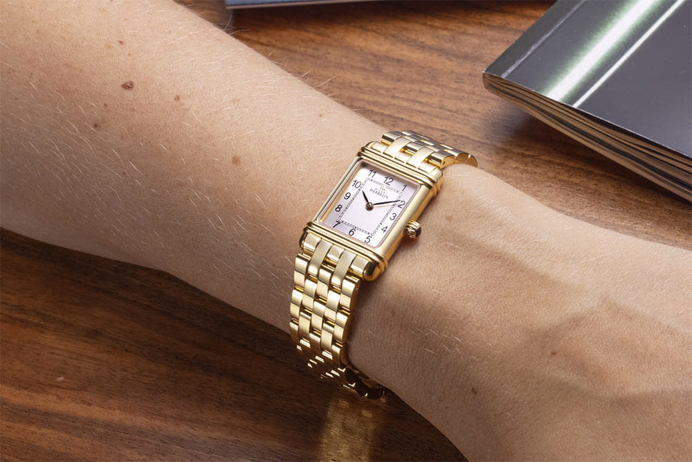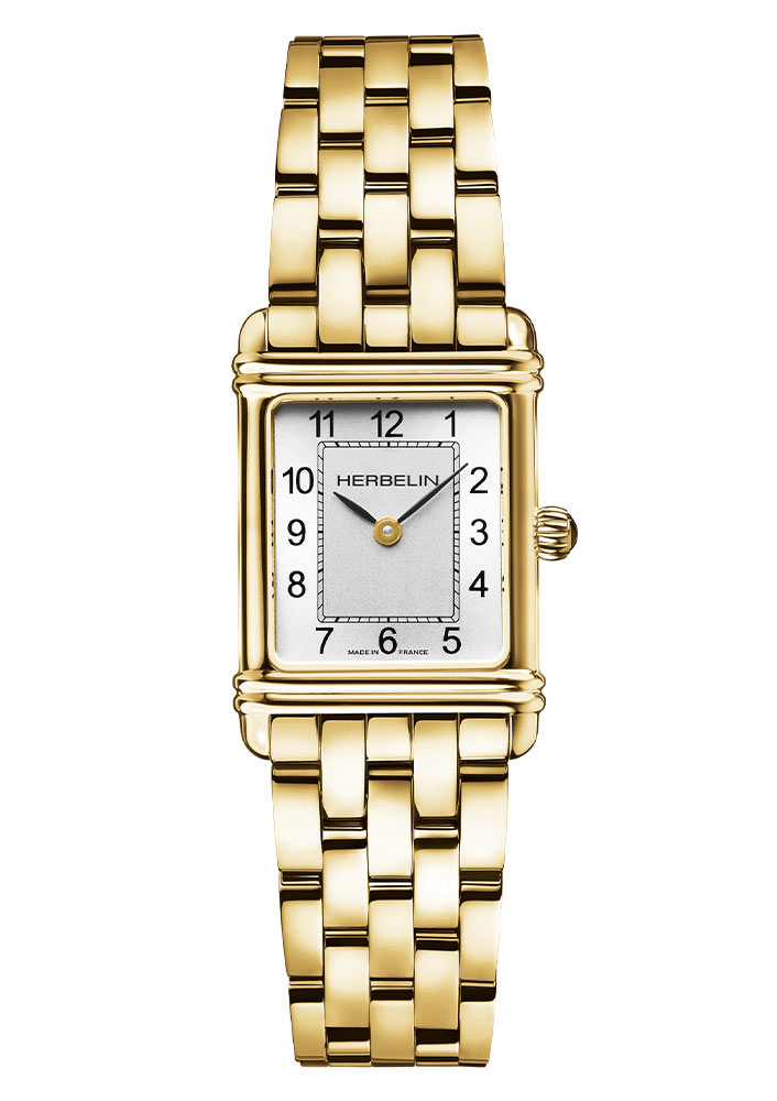 Francouzská hodinářská značka Herbelin představuje dámské obdélníkové hodinky Herbelin Art Deco 17478BP22 v PVD zlatě. Kolekce Herbelin Art Déco odkazuje na první hodinky z produkce rodinné značky Herbelin. Hodinky Herbelin Art Deco jsou zajímavou nabídkou jemného šperkového doplňku pro zápěstí každé ženy. Francouzské hodinky Herbelin Art Deco budou výborným doplňkem k lehkým šatům i na více či méně oficiální jednání.