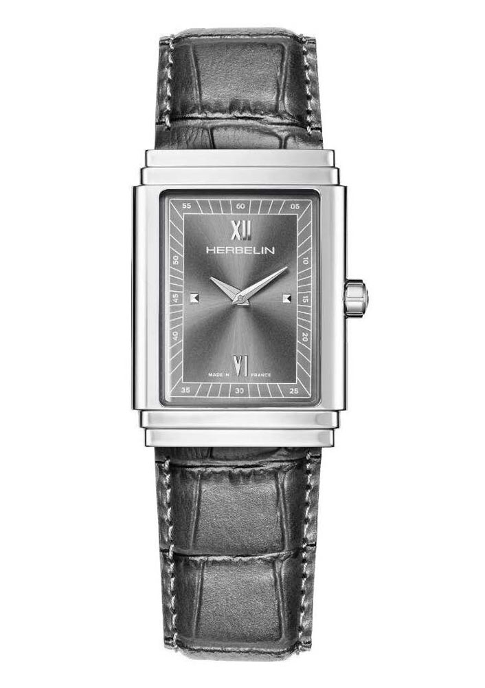 Dámské hodinky Herbelin mají obdélníkové pouzdro z nerezové oceli o velikosti 27 mm x 37 mm, stříbrné. Výrobce svůj elegantní model zkombinoval s šedým koženým páskem ve vintage stylu. Tyto hodinky jsou harmonickým spojením tradice a modernosti. Na šedém ciferníku je zasazen charakteristický rám s minutovou stupnicí, klasické římské indexy a štíhlé ručičky. Safírové sklíčko, které kryje číselník, zajišťuje dlouhotrvající čistotu a estetiku. Jedná se nejen o praktické řešení, ale také o vyjádření pozornosti k nejvyšší kvalitě zpracování.