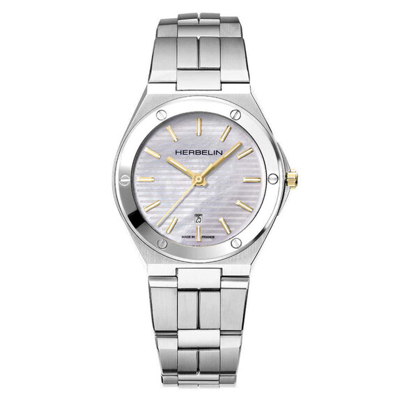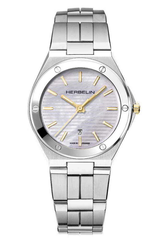 Cap Camarat je slavná kolekce hodinek francouzské značky Herbelin, která se vrací a představuje první dámský model v podobě hodinek Herbelin Cap Camarat . Klasickými hodinkami s krásným perleťovým ciferníkem je model s referenčním číslem 14545B19T. Kulaté pouzdro, které ukrývá křemenné srdce Ronda 785, je vyrobeno z nerezové oceli. Na přední straně pouzdra je 6 ozdobných šroubů. Na očka pouzdra je připevněn ocelový náramek s bezpečnou motýlkovou sponou. Na zadní straně pouzdra je kulaté víko s logem značky Herbelin a místem pro gravírování. Díky pouzdru o průměru 33mm a tloušťce pouhých 7mm v kombinaci s náramkem se hodinky budou jistě používat pohodlně a příjemně.