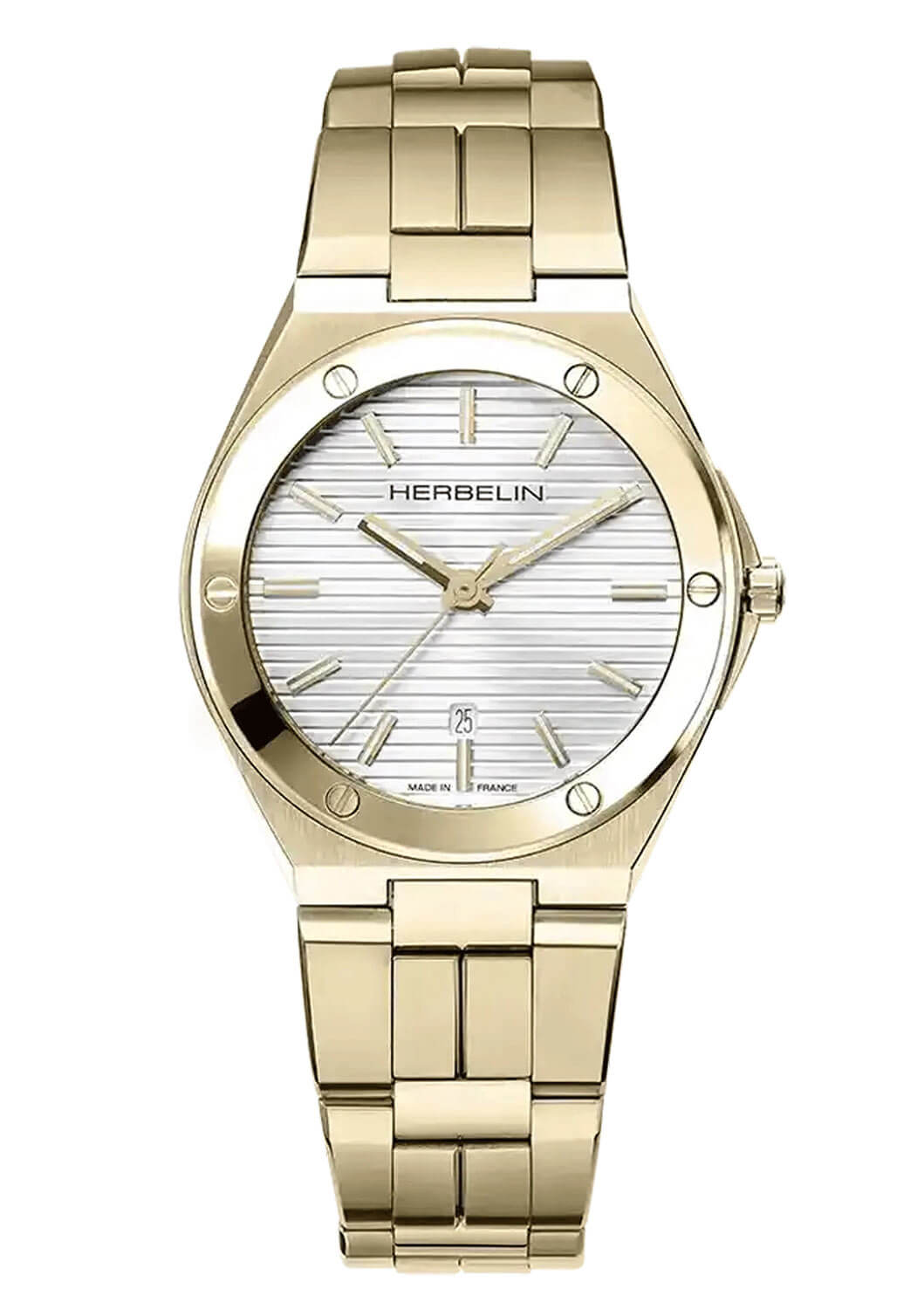 Bílý ciferník hodinek vyrobený z perleti připomíná zářící paprsky slunce v zenitu tohoto jihofrancouzského mysu. Luminiscenční značky hodin jemně napodobují třpyt měsíce a dodávají na pozadí perlového ciferníku dotek světla. Tento detail nejen zlepšuje čitelnost ve tmě, ale zároveň dává hodinkám poetický rozměr, který spojuje funkčnost s elegancí. Francouzské zlaté hodinky Herbelin 14545BP1N11 jsou také vybaveny diskrétním datumovým okénkem na 6. hodině a pohání je přesný švýcarský quartzový mechanismus, který zajišťuje spolehlivost a přesnost měření času.