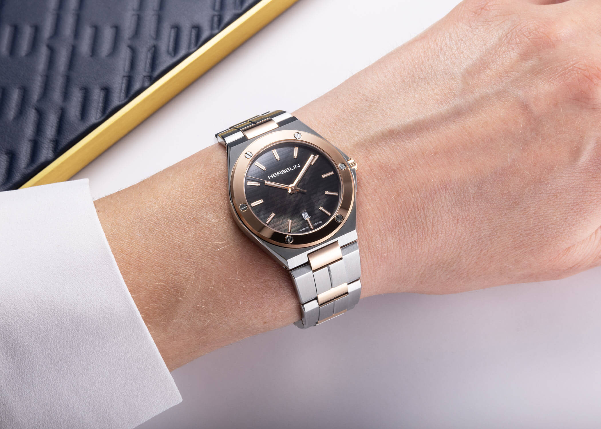 Černý ciferník hodinek vyrobený z perleti připomíná hluboké moře tohoto jihofrancouzského mysu, odrážející měsíční světlo. Luminiscenční značky hodin jemně napodobují blikání a dodávají tmavému perleťovému ciferníku dotek světla. Tento detail nejen zlepšuje čitelnost ve tmě, ale zároveň dává hodinkám poetický rozměr, který spojuje funkčnost s elegancí. Francouzské hodinky Herbelin 14545BTR49 jsou vybaveny také diskrétním datumovým okénkem na 6. hodině a pohání je přesný švýcarský quartzový mechanismus, který zajišťuje spolehlivost a přesnost měření času.