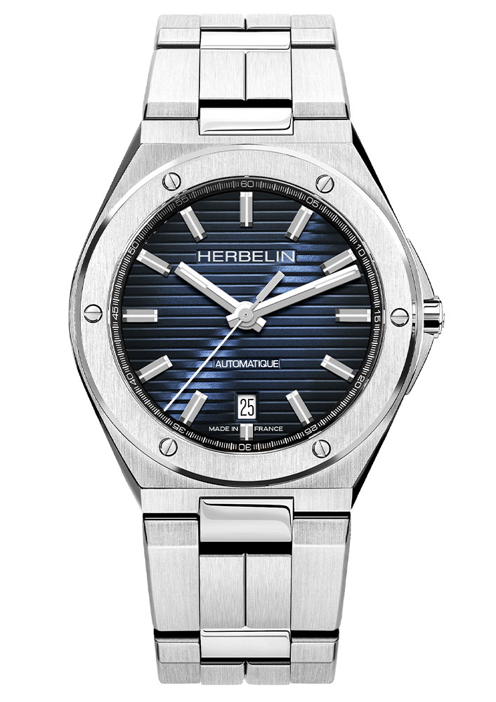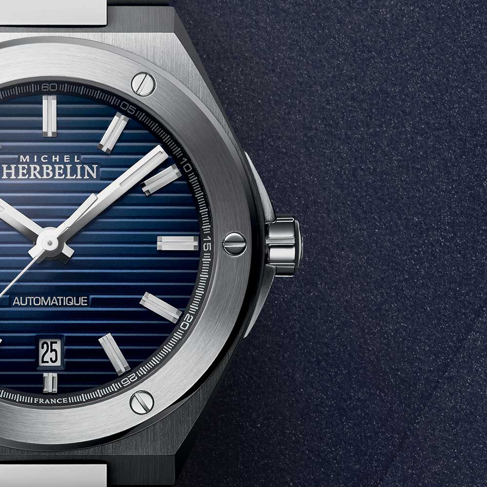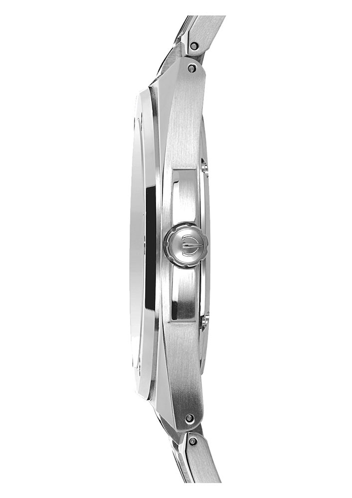 Hodinky mají ocelové pouzdro o průměru 40,5 mm . Jeho šestiúhelníkový tvar částečně maskuje kulatý prsten zdobený šesti šrouby. Modrý ciferník zdobí vodorovné pruhy. Na jeho povrchu byly implementovány fasetové indexy, které dokonale ladí s hroty stejného stylu. Módní barvy dokonale odpovídají aktuálním trendům. Zobrazovací systém je chráněn safírovým sklem s antireflexní vrstvou.