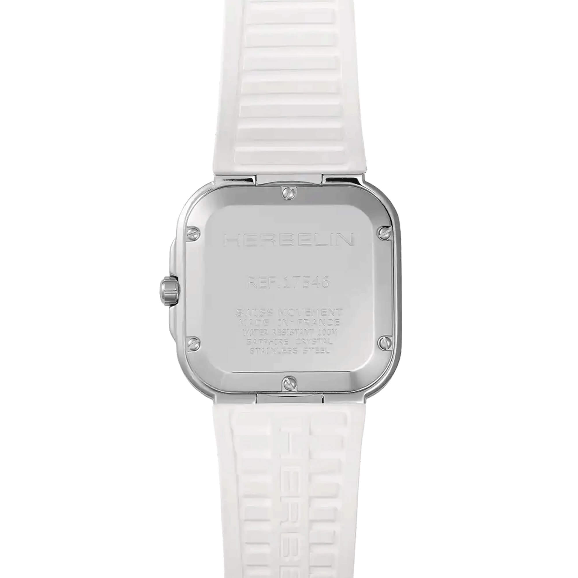 Za estetikou stojí i funkčnost. Hodinky jsou vybaveny přesným quartzovým strojkem, který zaručuje spolehlivost a pohodlí při každodenním nošení. Safírové sklíčko chrání ciferník před poškrábáním a luminiscenční ručky usnadňují čtení času i za šera — ideální řešení jak pro večeři při svíčkách, tak pro aktivní odpoledne na čerstvém vzduchu. Vodotěsnost na úrovni 100 metrů umožňuje nejen procházky po pláži, ale i plavání bez sundání hodinek. Ocelové dýnko připevněné šesti šrouby a robustní motýlkové zapínání integrované do bílého kaučukového řemínku zajišťují bezpečnost a komfort i v dynamických podmínkách. Herbelin zde nedělá kompromisy — tyto hodinky vypadají jako šperk, ale fungují jako špičkový sportovní nástroj.