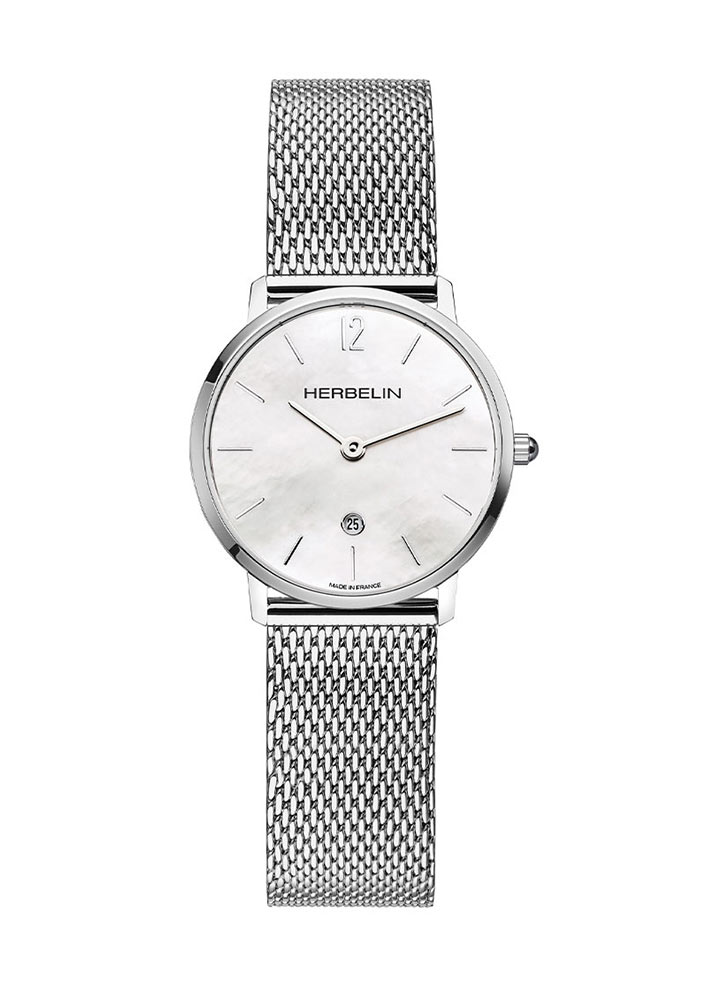 Přední část tvoří průhledné kvalitní safírové sklo. Sklo odolné proti poškrábání chrání krásný a jedinečný perleťový ciferník. Perleťový ciferník se vyznačuje jedinečným vzorem, který jistě potěší oko každého majitele prezentovaného modelu. Ciferník má dlouhé a štíhlé ručičky a indexy. 12. hodina byla označena arabskou číslicí a hrdým logem značky HERBELIN. Pozice šesté hodiny je vyhrazena pro datumové okno. Design ciferníku umožňuje odečítat čas téměř okamžitě. Datumové okénko vás naopak bude informovat o aktuálním dni v měsíci – je to ideální řešení pro dámy pohlcené prací a jinými povinnostmi. Dámské hodinky Herbelin City mají pod ciferníkem přesný švýcarský strojek Ronda na baterie.