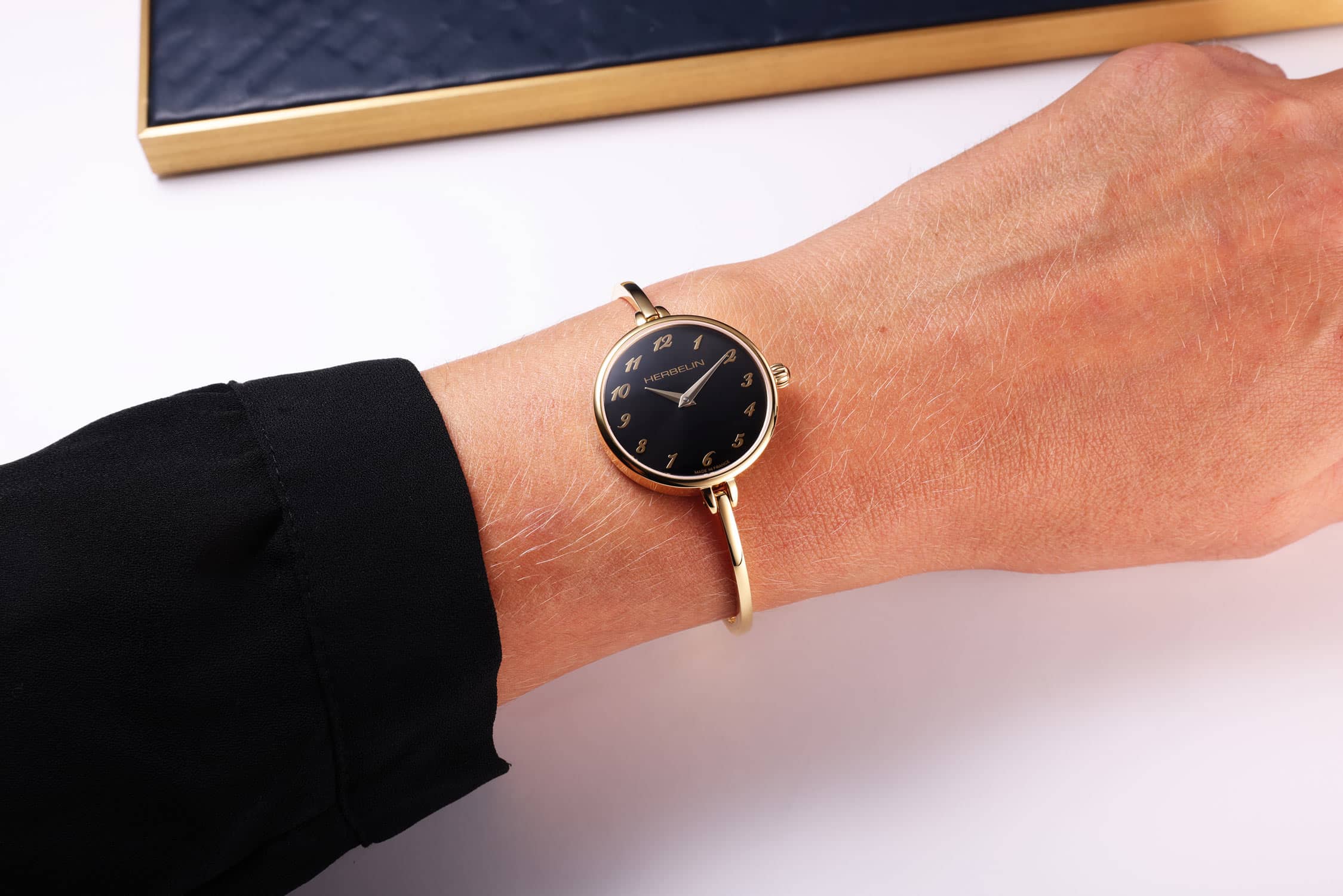 Štíhlá a minimalistická konstrukce hodinek Herbelin Fil na náramku přitahuje pozornost jemným černým ciferníkem, který s neuvěřitelnou lehkostí odráží světlo, čímž vytváří efekt jemného lesku. Díky tomu získává ciferník jedinečný půvab, který okouzlí na první pohled. Elegantně navržené, minimalistické hodinové indexy v kombinaci se zlatými ručičkami dodávají hodinkám výjimečnou eleganci, a jejich precizní pohyb zajišťuje, že každý okamžik je měřen s dokonalou přesností. Ciferník je chráněn sklem zafírovým, které je odolné proti poškrábání. Francouzské hodinky Herbelin Fil pohání švýcarský mechanismus Ronda na vyměnitelnou baterii.