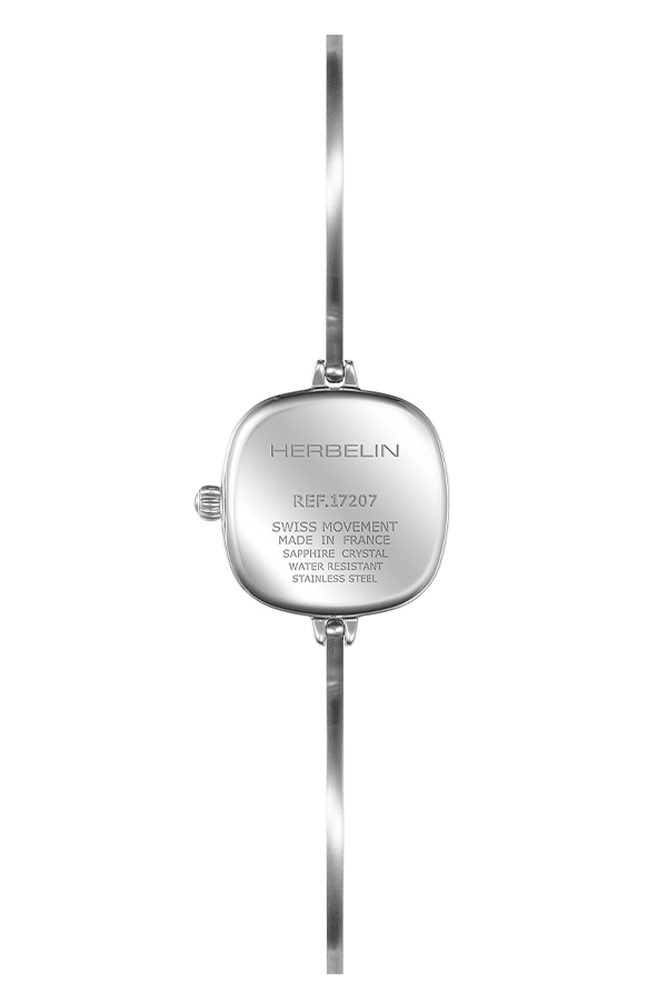 Francouzská značka Herbelin představuje velmi ženskou kolekci hodinek Fil. Prezentovaný model 17207B14 je časomíra na lehkém šperkařském náramku. Hranaté pouzdro se zaoblenými hranami je vyrobeno z nerezové oceli stříbrné barvy. Na uších měla připevněný tenký a lehký náramek. Je tuhý a navíc vyrobený z oceli s designem šperku. Slunný černý ciferník obsahuje jemné lineární indexy a dýkové ručičky. Ciferník je krytý spolehlivým safírovým sklem. Na zadní straně pouzdra je ocelové víko.