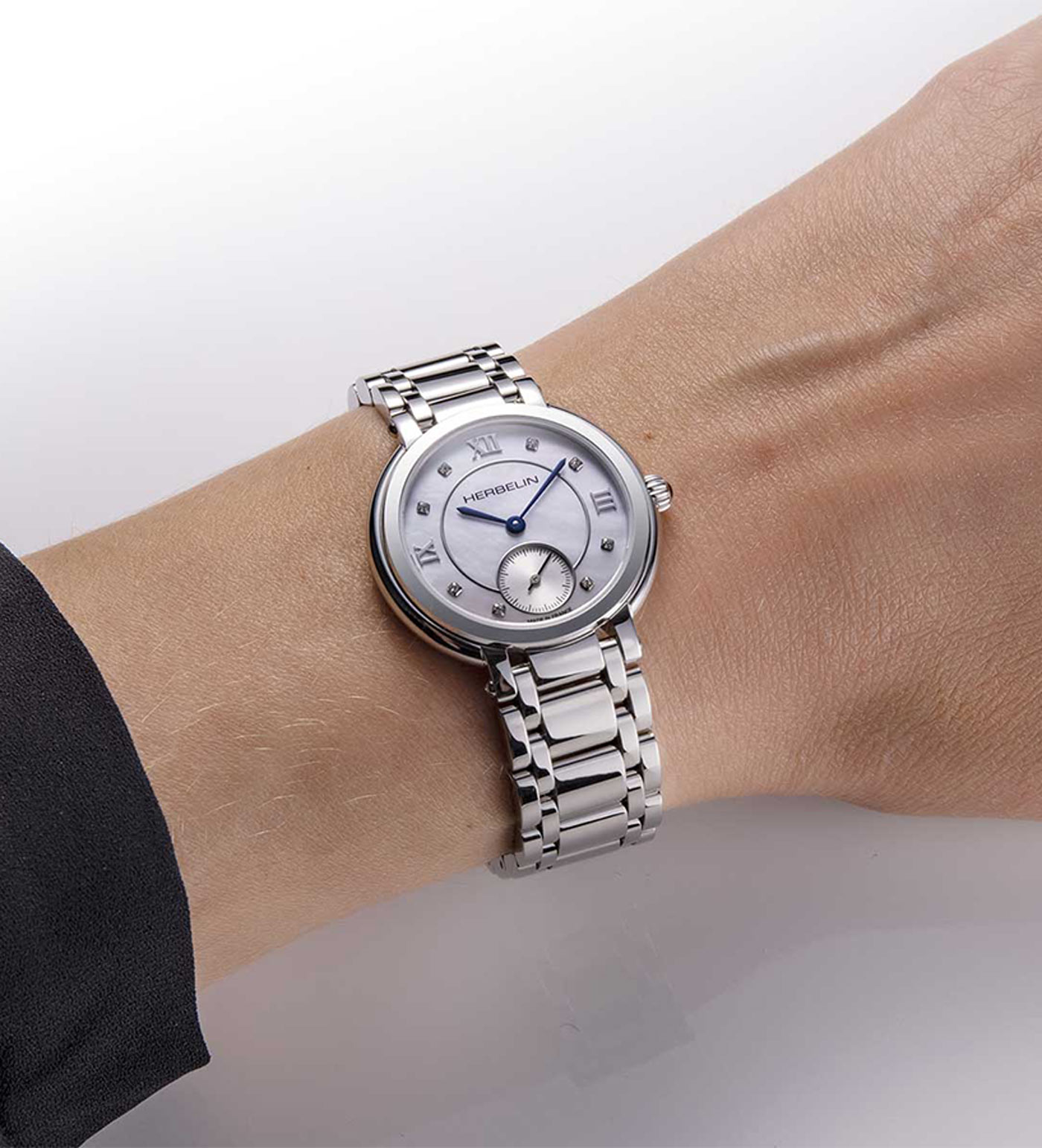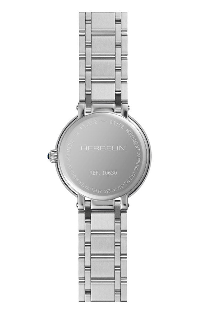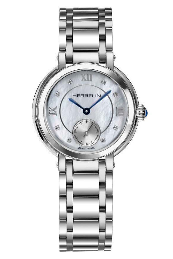 Elegantní dámské hodinky francouzské značky Herbelin Galet 10630/B59 v klasickém stylu. Psaníčko o tloušťce pouhých 6,5 mm v kombinaci s náramkem, který se velmi příjemně nosí. Perleťový ciferník s římskými číslicemi a kubickými zirkony byl obohacen o subciferník vteřinové ručičky na pozici šestky a vše kryje extrémně tvrdé a těžko poškrábatelné safírové sklíčko. Srdcem hodinek je quartzový Machineek Ronda 1069 napájený baterií. Vodotěsnost do 50 metrů (5 ATM), umožňuje bezpečné koupání a plavání s hodinkami na zápěstí. Hodinky jsou nabídkou pro ženu, která ocení eleganci a nadčasový šik. Hodinky Herbelin Galet 10630/B59 vypadají na ženském zápěstí skvěle. Díky tenkému pouzdru a lehkému náramku ji jistě lehce a příjemně využije každý majitel časomíry.