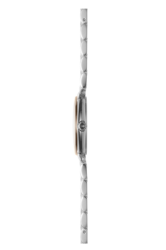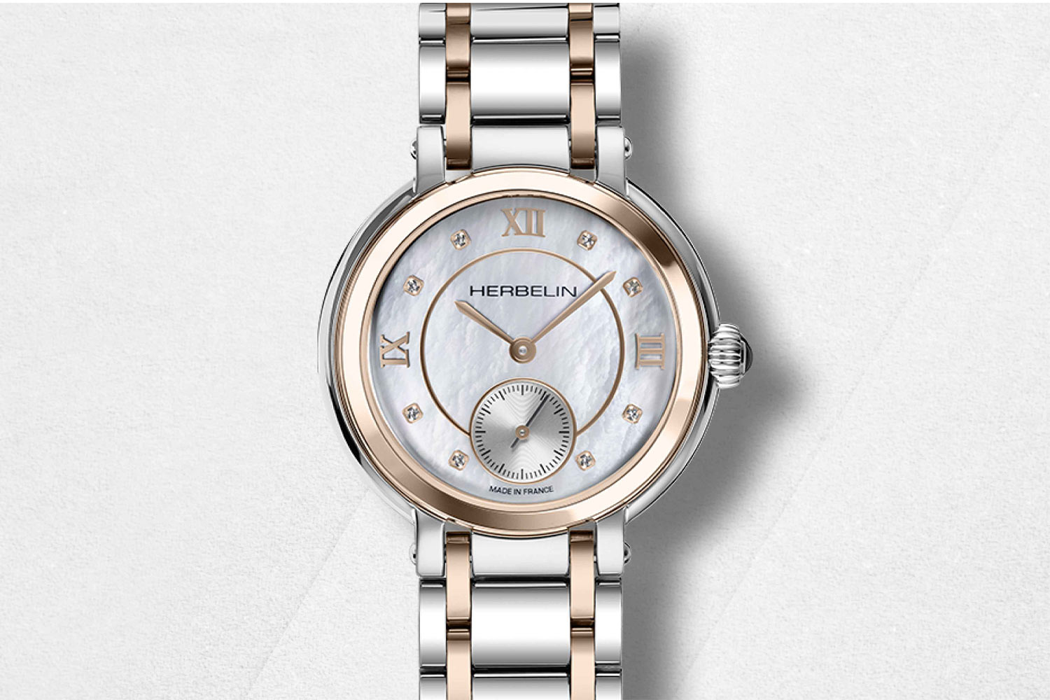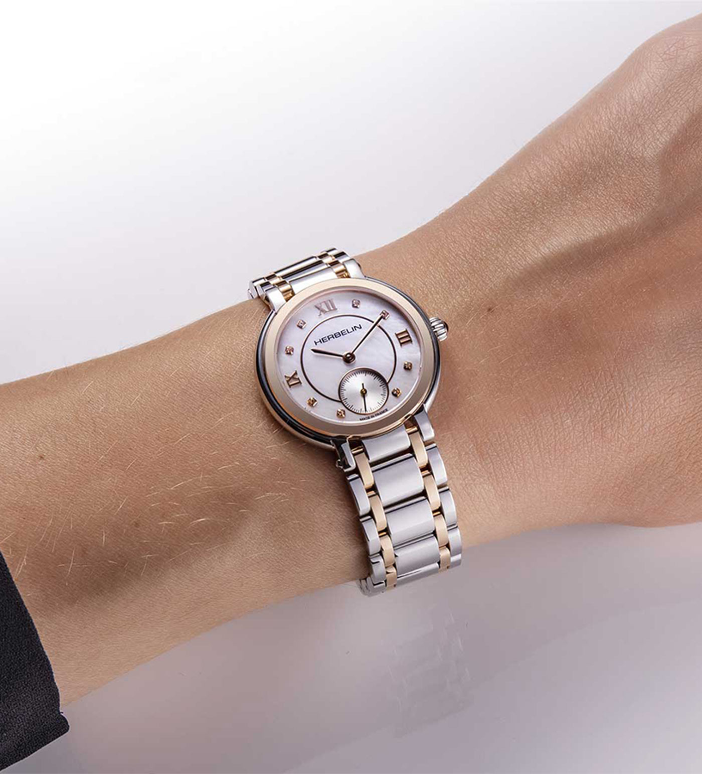 Elegantní dámské hodinky francouzské značky Herbelin Galet 10630/BTR59 v klasickém stylu. Psaníčko o tloušťce pouhých 6,5 mm v kombinaci s náramkem, který se velmi příjemně nosí. Prsten na pouzdře a články náramku jsou pozlaceny zlatým PVD povlakem . Perleťový ciferník s římskými číslicemi a kubickými zirkony byl obohacen o subciferník vteřinové ručičky na pozici šesté hodiny a vše kryje extrémně tvrdé a těžko poškrábatelné safírové sklíčko. Srdcem hodinek je quartzový Machineek Ronda 1069 napájený baterií. Vodotěsnost do 50 metrů (5 ATM), umožňuje bezpečné koupání a plavání s hodinkami na zápěstí. Hodinky jsou nabídkou pro ženu, která ocení eleganci a nadčasový šik. Hodinky Herbelin Galet 10630/BTR59 vypadají na ženském zápěstí skvěle. Díky tenkému pouzdru a lehkému náramku ji jistě lehce a příjemně využije každý majitel časomíry.