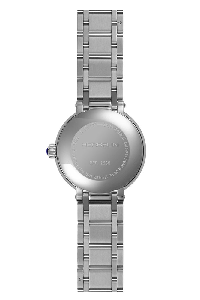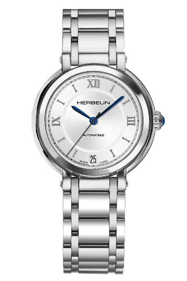 Elegantní dámské hodinky francouzské značky Herbelin Galet 1630B28 v klasickém stylu. Psaníčko o tloušťce pouhých 9,5 mm v kombinaci s náramkem, který se velmi příjemně nosí. Ciferník stříbrné barvy s římskými číslicemi a lineárními indexy a datumovkou na pozici šesté hodiny kryje extrémně tvrdé a těžko poškrábatelné safírové sklíčko. Srdcem hodinek je automatický Machineek Sellita W200-1. Vodotěsnost do 50 metrů (5 ATM), umožňuje bezpečné koupání a plavání s hodinkami na zápěstí. Hodinky jsou nabídkou pro ženu, která ocení eleganci a nadčasový šik. Hodinky Herbelin Galet vypadají na zápěstí krásně a jistě zaujmou.