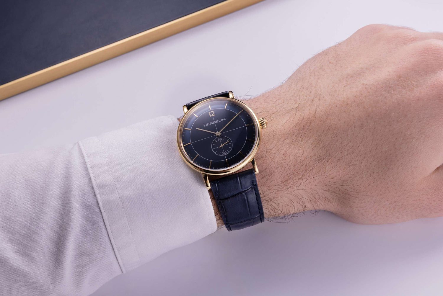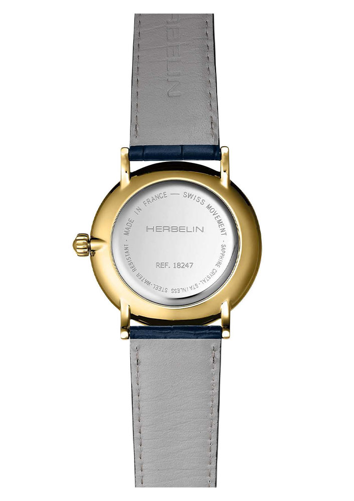 Ciferník v intenzivní modré barvě získává eleganci a originalitu. Pod safírovým sklíčkem odolným proti poškrábání jsou vidět precizně vyrobené lineární indexy. Dvanáctou hodinu doplňuje arabská číslice. Aktuální čas ukazují štíhlé, pozlacené ručičky. Subciferník umístěný na šesté hodině je vteřinová ručička, která hodinkám dodává dynamiku a retro charakter. Quartzový mechanismus, který tyto hodinky pohání, zaručuje spolehlivost a velmi dobré měření času.