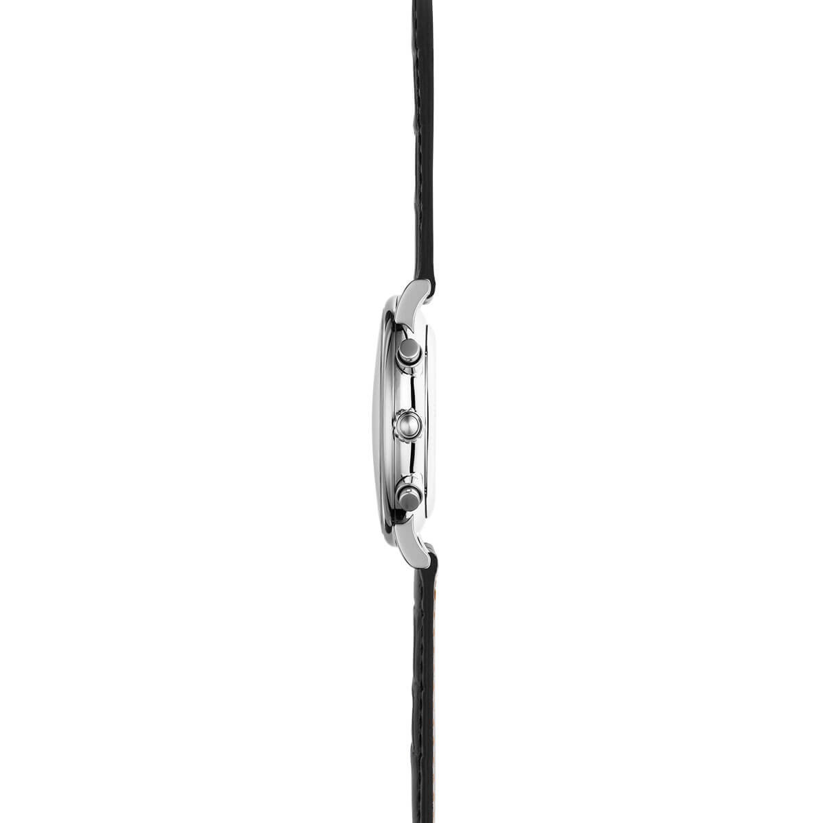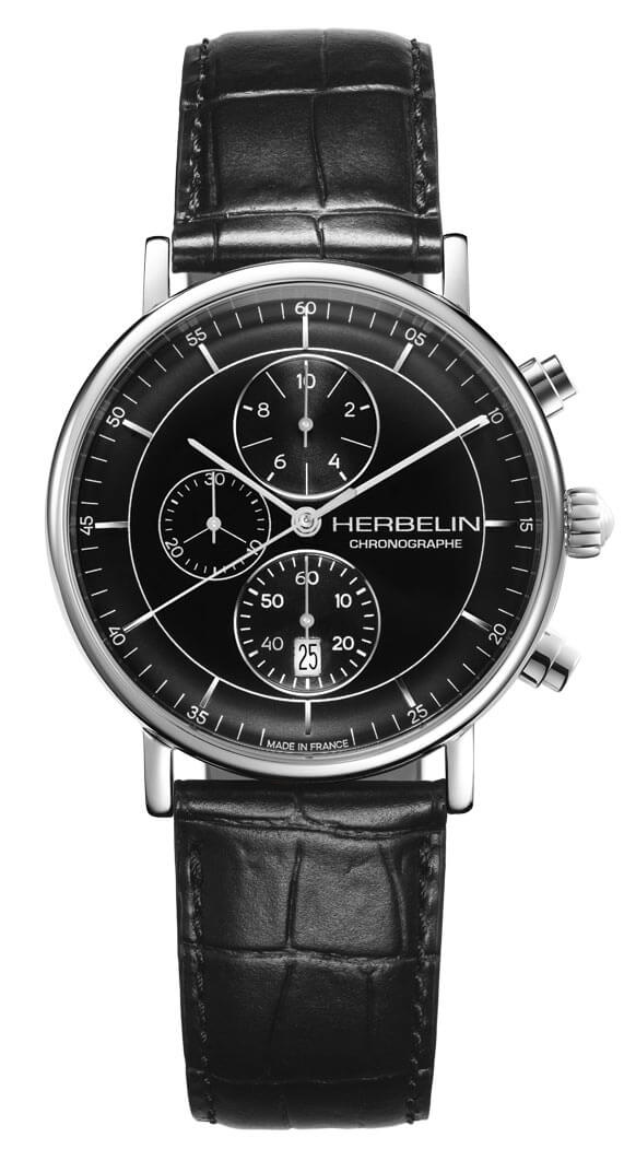 Pouzdro hodinek Herbelin Inspiration Chronographe z ušlechtilé oceli zaujme minimalistickým tvarem a optimálními proporcemi - průměr 40 mm a tloušťka pouhých 11 mm tento model perfektně padne na zápěstí bez ztráty komfortu nošení. Tloušťka pouzdra usnadňuje schování těchto hodinek pod manžetou elegantní nebo sportovní košile. Hodinky jsou vybaveny klasickým černým koženým řemínkem, který podtrhuje jejich elegantní charakter a zajišťuje pohodlí při nošení. Díky použití safírového skla si hodinky Herbelin Inspiration Chronographe zachovávají svůj bezvadný vzhled a čitelnost při každodenním používání.