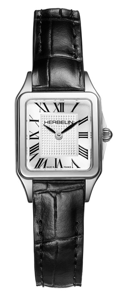 Na stříbřitém ciferníku upoutá pozornost čtvercový gilošovaný vzor uprostřed, obklopený římskými číslicemi klasického střihu – jde o spojení pařížského šarmu a hodinářského pořádku. Kontrast mezi tvarem a detailem dodává modelu hloubku a eleganci. O přesný chod se stará švýcarský quartzový strojek Ronda, který zaručuje spolehlivost a pohodlí bez potřeby každodenního seřizování. Tento model si nehraje na extravagantní šperk – je to promyšlený návrh s nadčasovou identitou. Herbelin Luna 17407AP08 na koženém řemínku je hodinkami pro ženy, které si cení ticha místo hluku a kvality místo zdání.