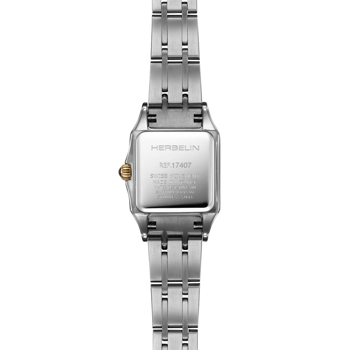 Čtvercové dámské hodinky Herbelin Luna Bicolor 17407BT08 jsou určeny ženám, které dokážou ocenit klasiku s charakterem. Nenásledují módu – stojí nad ní. Jejich obdélníkový tvar a grafické detaily tvoří design s intelektuálním výrazem, který se dokonale hodí do šatníku minimalistek, estetek i všech žen, které místo sezónních trendů volí promyšlené věci. Stříbrno-zlatá Luna je časomíra, která nekřičí – ale je vidět, že mluví s přesvědčením.