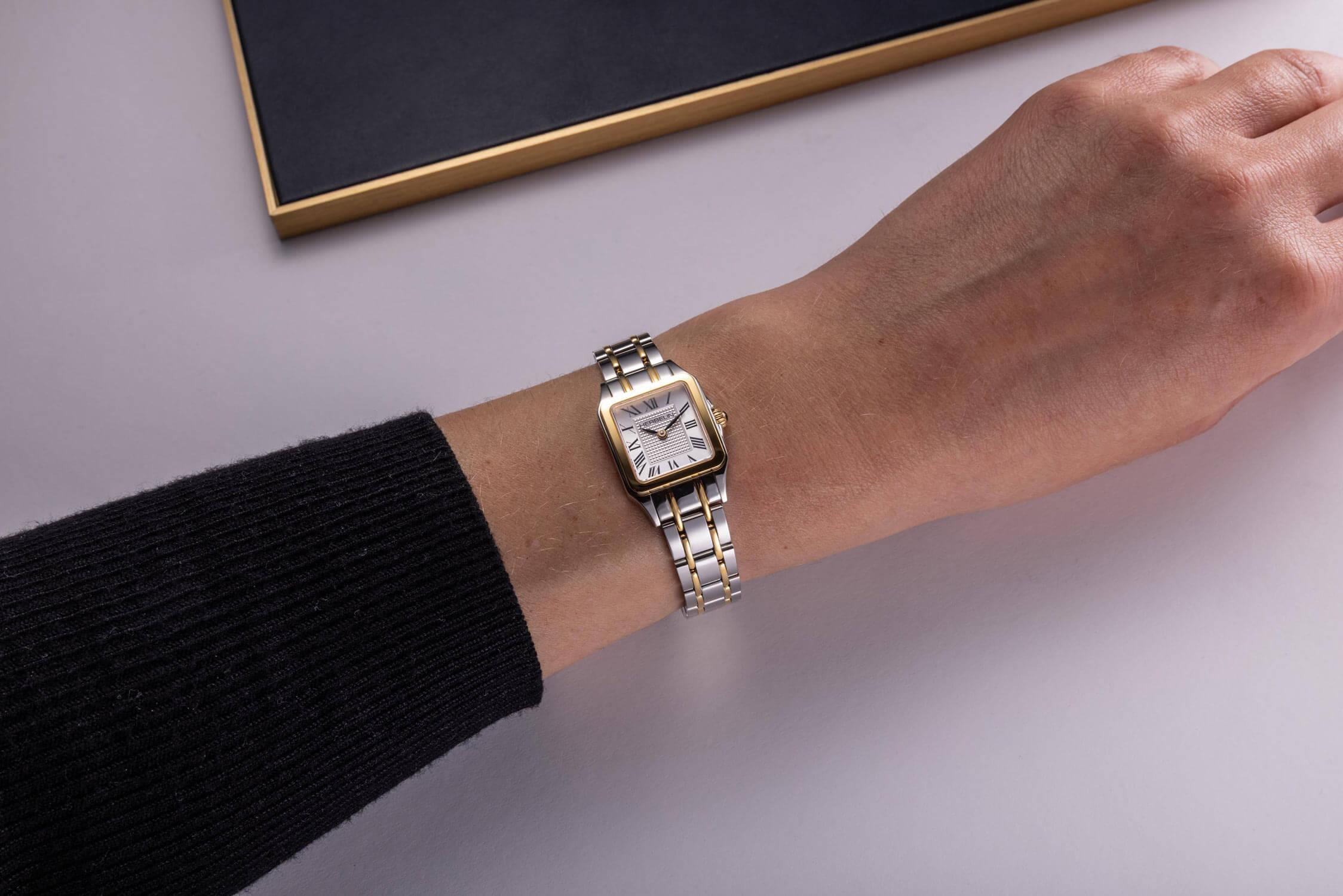 Elegantní pouzdro o rozměrech 18.60 × 20 mm je vyrobeno z odolné ušlechtilé oceli 316L a jeho saténově matný povrch zdůrazňuje nadčasový tvar. Kombinováno je s náramkem – pevným, ale mimořádně pohodlným při nošení. Tento model má prvky pokryté zlatou povrchovou úpravou PVD: luneta, korunka a středové články náramku jsou pozlacené. Safírové sklíčko chrání ciferník před poškrábáním a zajišťuje, že hodinky neztratí své kouzlo ani při intenzivním používání.