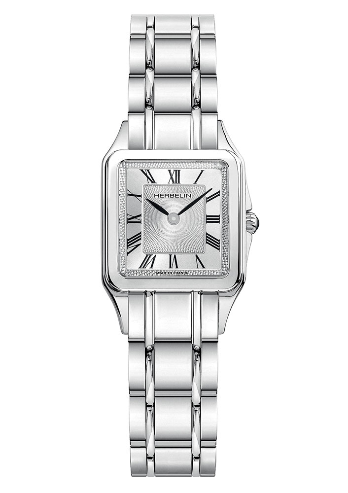 Herbelin Luna 17457B01 jsou elegantní dámské hodinky klasického stylu. Ocelový náramek ve stříbrné barvě a čtvercové pouzdro o šířce 24 mm ve stejné barvě. Safírové sklíčko chrání stříbrný gilošovaný ciferník s římskými číslicemi. Dobrá třída vodotěsnosti až do 50 metrů umožňuje více potřísnění hodinek bez obav z poškození mechanismu.