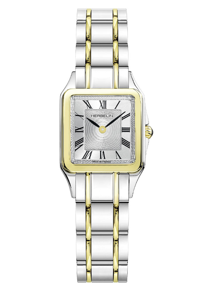 Herbelin Luna 17457BT01 jsou elegantní dámské hodinky klasického stylu. Dvoubarevný stříbrno-zlatý ocelový náramek a čtvercové pouzdro o šířce 24 mm ve stejné barvě. Safírové sklíčko chrání stříbrný gilošovaný ciferník s římskými číslicemi. Dobrá třída vodotěsnosti až do 50 metrů umožňuje více potřísnění hodinek bez obav z poškození mechanismu.