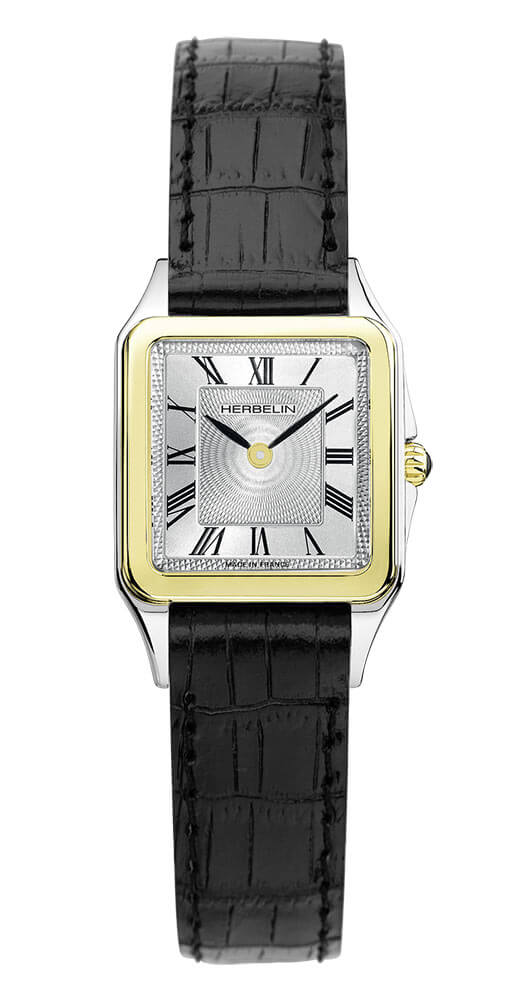 Neobvyklé, obdélníkové pouzdro o rozměrech 24 mm x 24 mm je vyrobeno z nerezové oceli, která nerezaví. Na pravé straně je tradičně ve tři hodiny instalována elegantní korunka pro manipulaci s ručičkami. Na rubu je ocelový kryt, který efektivně uzavírá celou konstrukci. Řemínek hodinek Herbelin je vyroben z přírodní černé kůže s texturou odkazující na exotický vzor, což dodává tomuto modelu další eleganci. Pohodlné zapínání na přezku znamená, že Herbelin z kolekce Luna perfektně padne na zápěstí a neobtěžuje vás ani při celodenním nošení.