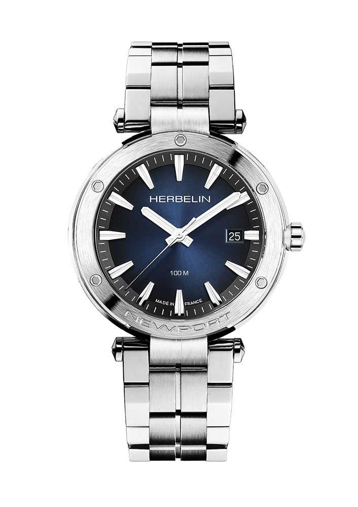 Časovač Herbelin Newport 12288B15 je návrhem pánských sportovních hodinek vyrobených v námořním stylu. Herbelin 12288B15 z kolekce Newport je kulatý časovač vyrobený z nerezové oceli ve stříbrné barvě. Z přední strany pouzdra je vidět broušená luneta s ozdobnými šroubky a názvem kolekce hodinek. Na zadní straně pouzdra najdeme pár informací o řadě hodinek a uprostřed krásný volant a hrdé jméno značky HERBELIN s názvem kolekce Newport. Na očkách pouzdra je připevněn elegantní ocelový náramek stříbrné barvy s motýlkovým zapínáním. Pod safírovým sklíčkem, které je extrémně těžké poškrábat, najdeme slunečně modrý ciferník s lineárními indexy a velkými ručičkami. Indexy a ručičky mají speciální fluorescenční hmotu, díky které můžeme odečítat aktuální čas i za zhoršených světelných podmínek. Ciferník je vybaven funkcí datumovky na třetí hodině, díky které zjistíme, jaký je aktuální den v měsíci. Ciferník nás také informuje o vysoké voděodolnosti hodinek až do 100 metrů. Vodotěsnost 10 ATM vám umožní plavat s hodinkami na zápěstí, aniž byste se museli obávat jejich poškození. Herbelin Newport 12288B15 jsou návrhem sportovních hodinek, které se jistě budou hodit k elegantní košili, ale i každodennímu outfitu. Hodinky vypadají na zápěstí skvěle a díky jednoduchým řešením a chybějícím doplňkovým funkcím na ciferníku budou dobře čitelné pro každé oko.