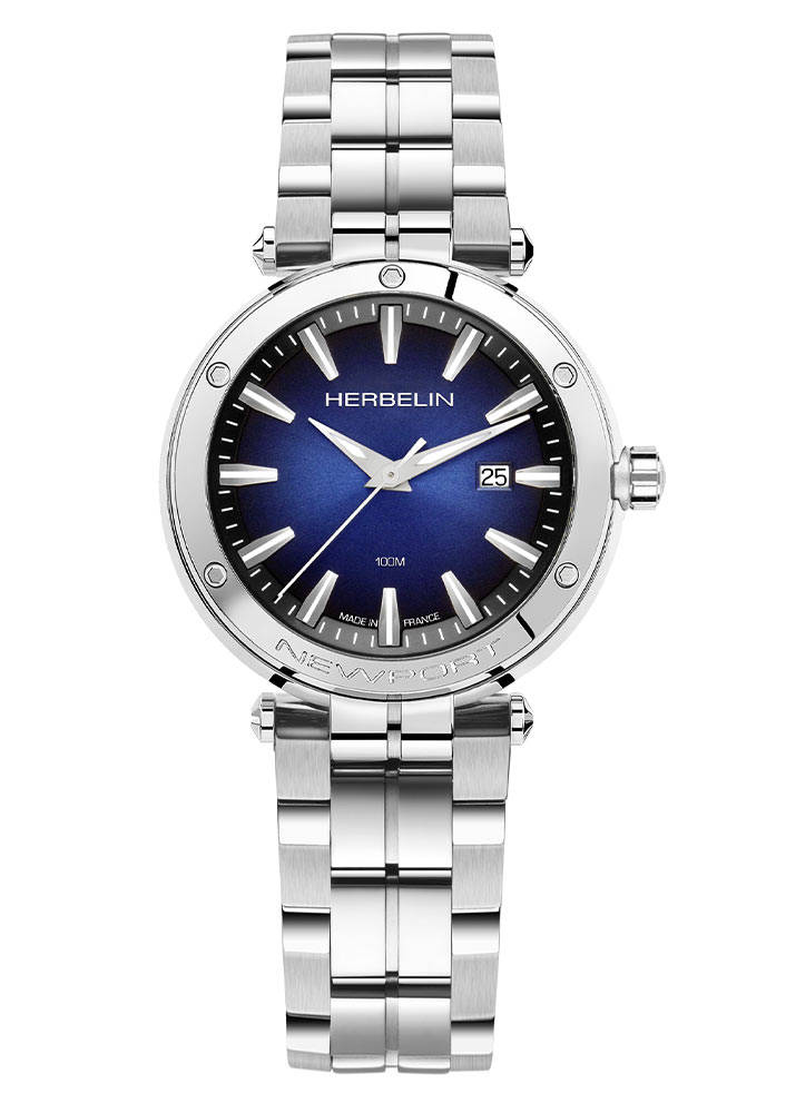 Herbelin Newport 14288B15 je návrh krásných klasických hodinek pro dámy, které preferují jednoduché linie a klasiku. Hodinky Herbelin z kolekce Newport jsou modelem, který sleduje ducha sportu. Hodinky jsou vyrobeny v námořním stylu. Kulaté 35mm pouzdro je vyrobeno z nerezové oceli ve stříbrné barvě. Zepředu je na lunetě vidět 5 ozdobných šroubů a název námořní kolekce Newport . Na očka pouzdra je připevněn elegantní náramek s bezpečnou motýlkovou sponou. Náramek modelu 14288B15 zajistí pohodlné používání časomíry a skvělý vzhled v kombinaci s kulatým pouzdrem. Modrý ciferník se vyznačuje elegantními ručičkami, lineárními indexy a funkcí data na 3. hodině. Safírové sklíčko extrémně těžko poškrábatelné ochrání ciferník před poškozením. Námořní duch dodává těmto hodinkám také sportovní nádech. Herbelin Newport 14288B15 je návrh pro ženy, které hledají hodinky, které se pohodlně nosí. Hodinky se budou hodit k elegantnímu outfitu i ke každodennímu oblečení. Vysoká vodotěsnost do 100 metrů vám umožní s hodinkami plavat bez obav z jejich poškození.