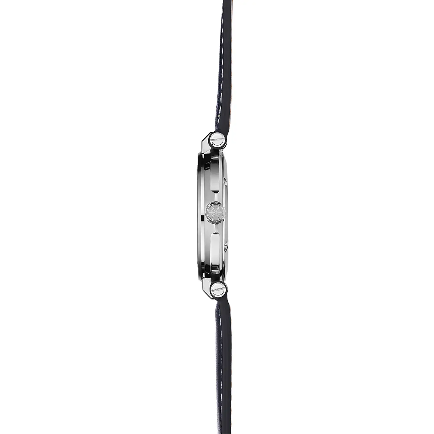 Hluboký námořnický odstín ciferníku přitahuje pohled svou čistotou a tvoří ideální pozadí pro stříbřité akcenty. Rozvržení ciferníku bylo navrženo s důrazem na maximální přehlednost: aplikované lineární indexy a ručičky s bílou luminiscenční vrstvou zaručují vynikající čitelnost i po setmění. Na šesté hodině je umístěn černý subciferník malé sekundy, který celku dodává technický charakter, a datumovka na třetí hodině zvyšuje funkčnost modelu. To vše je chráněno safírovým sklem, které díky své tvrdosti zůstává odolné proti poškrábání.