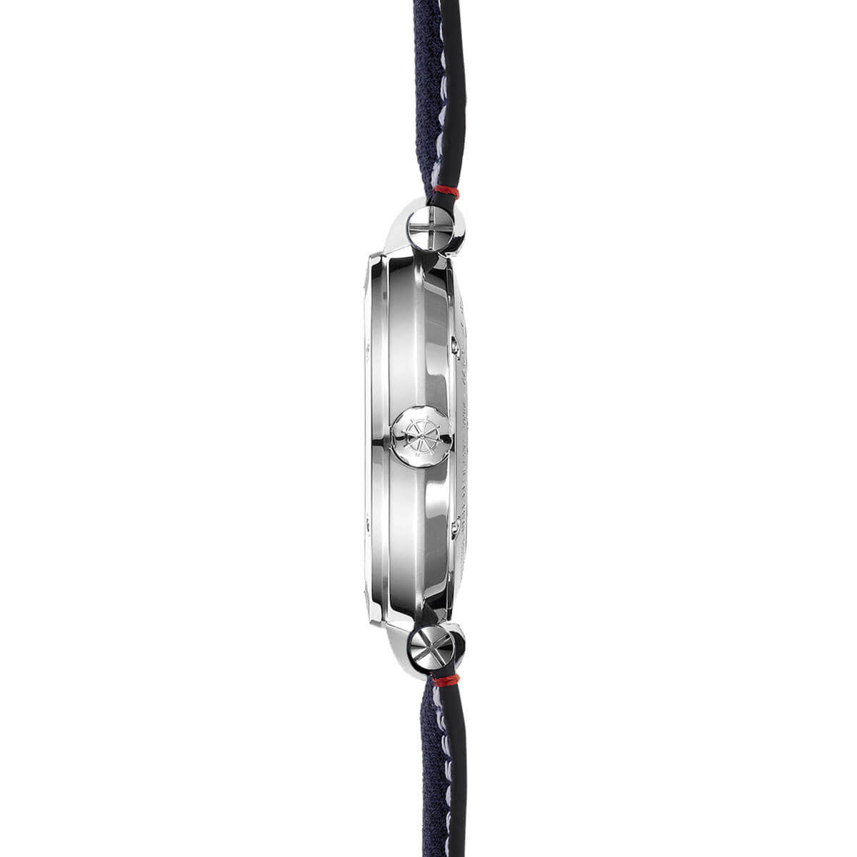 Pouzdro o průměru 42 mm je vyrobeno z vysoce kvalitní ušlechtilé oceli, přičemž charakteristické uchycení řemínku a pohodlná korunka odkazují na styl klasických palubních přístrojů. Hodinky jsou osazeny textilním řemínkem v námořnické modři s bílým prošitím a červenými akcenty – materiálem odolným, lehkým a pohodlným pro každodenní nošení. Voděodolnost do 100 metrů a šroubovací dýnko dělají z modelu Newport spolehlivého společníka na jachtě i při běžném nošení.