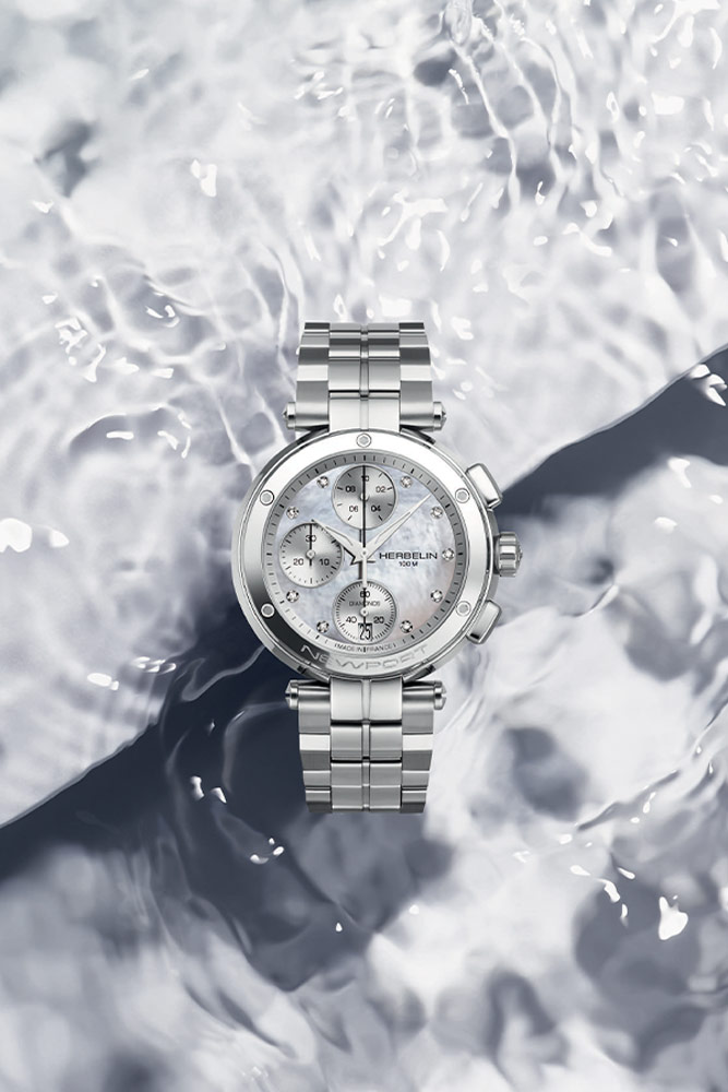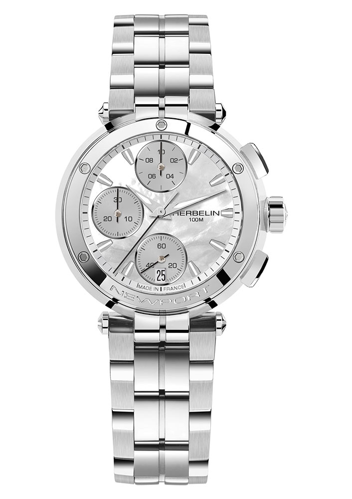 Sportovní dámské hodinky francouzské značky Herbelin v námořním stylu. Hodinky z kolekce Newport Chrono 35688B19 mají kulaté ocelové pouzdro ve stříbrné barvě s funkčními tlačítky na pravé straně. K pouzdru je připevněn ocelový náramek s motýlkovým zapínáním. Perleťový ciferník s lineárními indexy má funkci chronografu a datumovku na pozici šesté hodiny a celek chrání těžko poškrábatelné safírové sklíčko. Srdcem hodinek je quartzový Machineek Ronda 3540D. Hodinky Newport Chrono 35688/B19 od značky Herbelin vypadají na zápěstí krásně.Svítivě perleťový ciferník umožňuje snadné odečítání aktuálního času. Díky ocelovému náramku se budou hodinky pohodlně používat v každé situaci. Sportovní chronograf dodává tomuto modelu dráp. Stopky se jistě budou hodit pro měření času například při závodech nebo různých sportech.