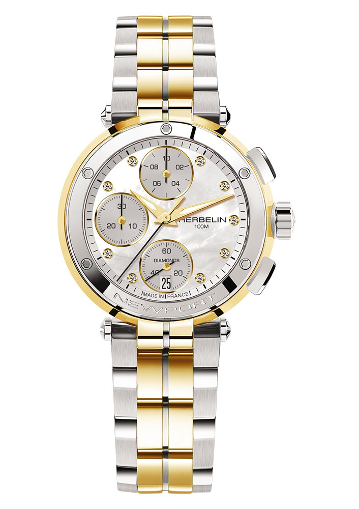 Hodinky s diamanty z kolekce Newport Lady Chrono jsou příkladem zdařilého spojení hodinářských tradic a námořních motivů. Herbelin 35688BT89 je perfektní nabídkou pro milovníky spojení sportovního a elegantního stylu, stejně jako pro příznivce doplňků té nejvyšší kvality a vysoké vnímané hodnoty. Třída vodotěsnosti 100 metrů navíc chrání hodinky před zaplavením během lijáků, koupání a plavání.