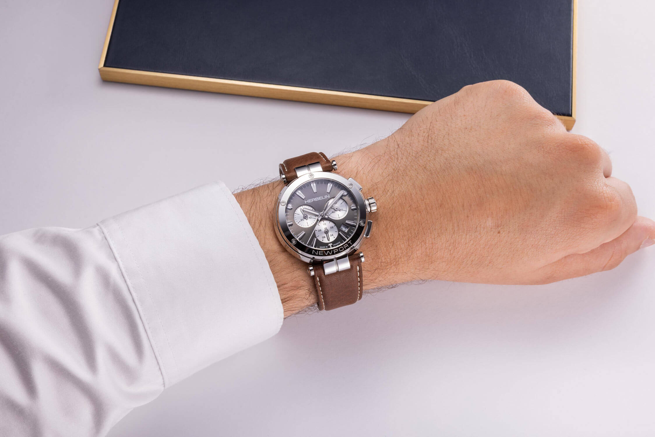 Technicky je model poháněn švýcarským strojkem Ronda s funkcí stopek a datem, což z něj činí spolehlivého partnera nejen pro schůzky, ale i na cestách. Jeho funkčnost je sladěna s vyváženou estetikou – indexy připomínající hroty šípů a velké ručičky jsou pokryty luminiscenční vrstvou, která zajišťuje dokonalou čitelnost i po setmění. Hodinky Herbelin Newport Chrono 37658AP24MA na koženém řemínku jsou volbou pro muže, který ví, kam směřuje – a chce si čas měřit po svém.