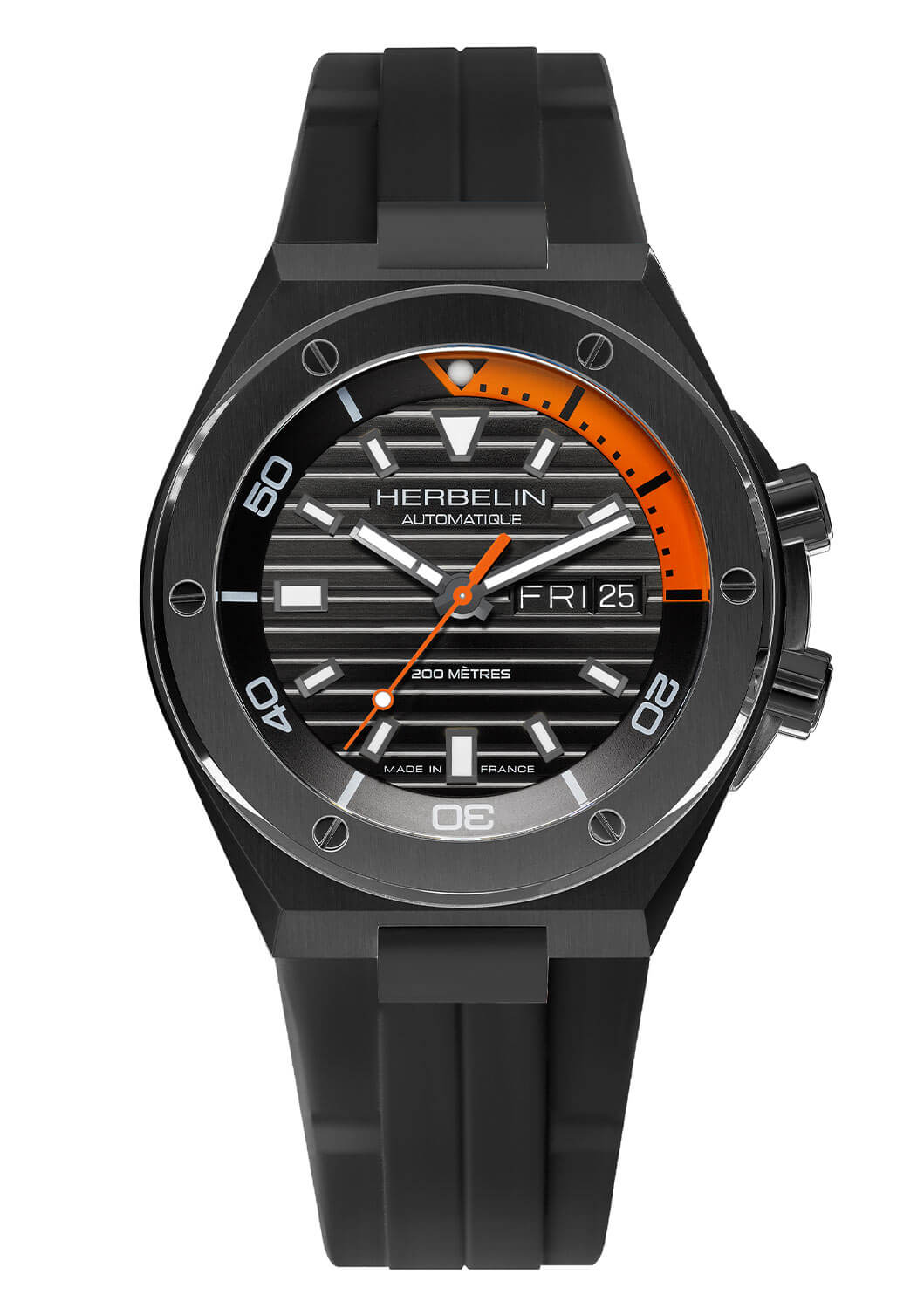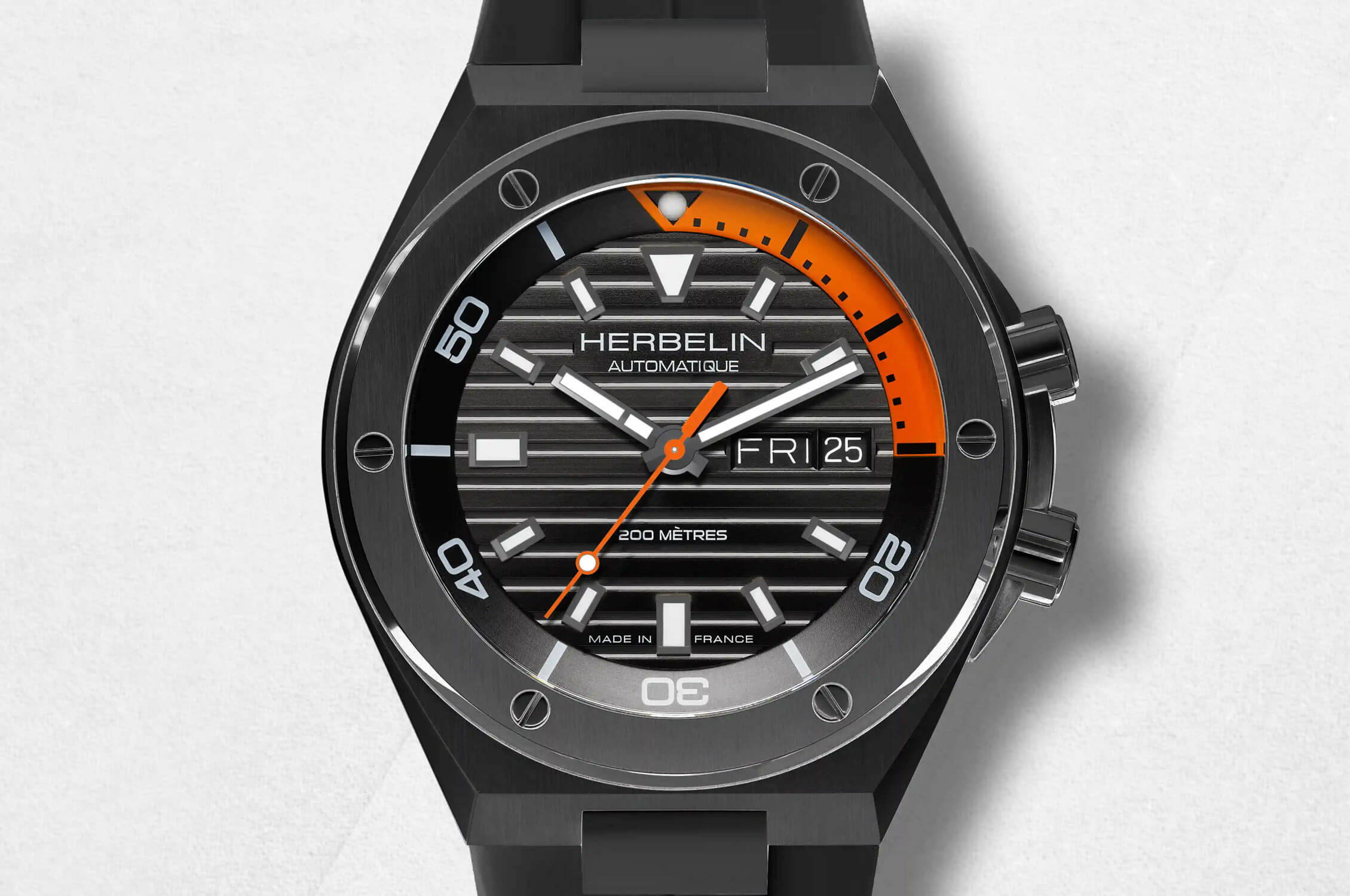 Sytě černý ciferník zdobený vodorovnými pruhy a velkými výraznými indexy hned dává tušit, že máme co do činění s modelem stvořeným pro muže, kteří se nebojí vyniknout. Čiré ruce a luminiscenční povlak zajišťují čitelnost v náročných podmínkách, což ocení především milovníci outdoorových dobrodružství. Mimořádně užitečným doplňkem je vnitřní otočná stupnice, se kterou lze manipulovat díky přídavné korunce instalované mezi druhou a třetí hodinou. Tato stupnice vám pomůže sledovat ubíhající čas v minutách, například když jste ponořeni. Kromě toho vám funkce denního data umožňuje mít kontrolu nad všemi nejdůležitějšími detaily každodenního života. Čím se však odlišuje od ostatních modelů, je solidní zpracování – francouzská preciznost je vidět v každém detailu.