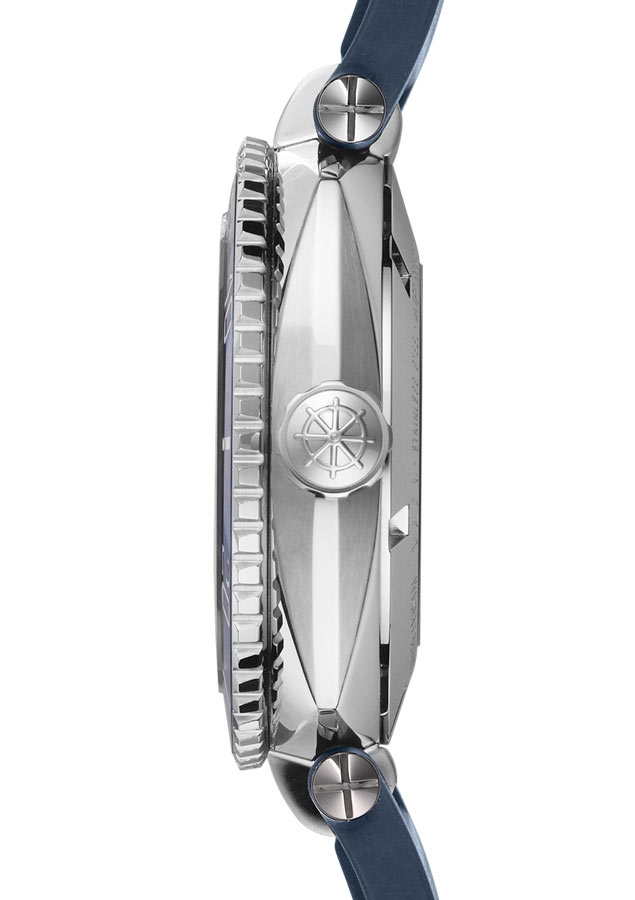Newport Diver Automatic zdobí dobře čitelný modrý číselník s velkými lineárními indexy a ručičkami s přídavkem fluorescence. Ve tři hodiny je rozšířené datumové okno s názvem dne v týdnu a dne v měsíci. Vysoká vodotěsnost do 300 metrů vám umožní bezpečně se potápět s hodinkami na zápěstí. Srdcem je automatický Machineek Sellita SW220-1.