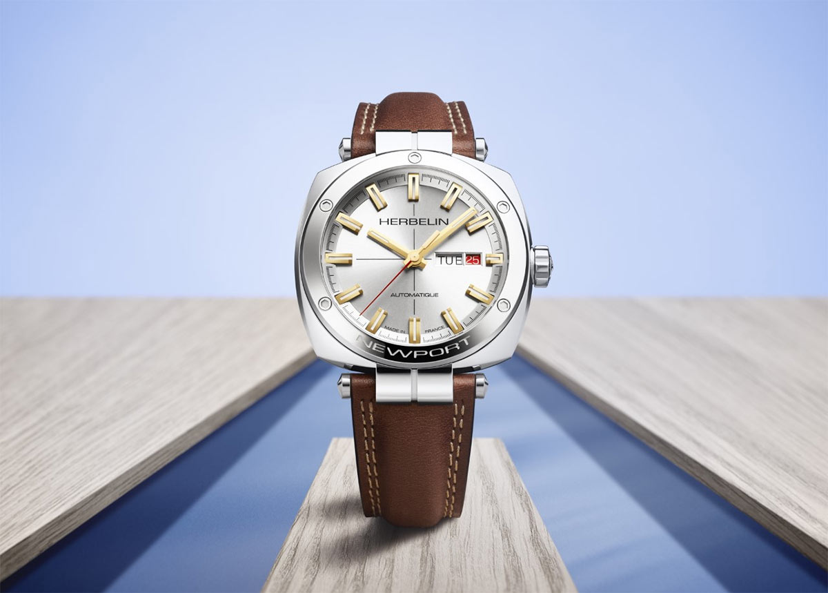 Okamžitě jej lze identifikovat jako ikonický Newport a vyznačuje se: středovými poutky na popruhu, rámečkem ve stylu okénka (v plachtění vodotěsným oknem umístěným na jachtě) zdobeným pěti šrouby napodobujícími jachtové navijáky, reliéfní řídítka na navíjecí korunce. Poslední z těchto prvků se poprvé objevuje jako přímá výpůjčka z Originního modelu Herbelin ze 70. let.