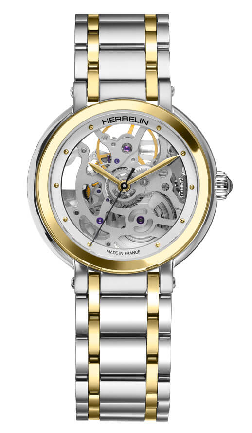 Francouzská značka Herbelin představuje jedinečný, dvoubarevný model pro ženy – dámské hodinky Herbelin Newport Automatic Skeleton 1630BTSQ12 jsou dokonalou ukázkou časomíry, která odhaluje svá tajemství. Tyto elegantní hodinky jsou skutečnou lahůdkou pro milovníky hodinářství. Díky svému jedinečnému designu přitahují pozornost, skeletové hodinky Herbelin vzbuzují obdiv a jistě se stanou předmětem obdivu.