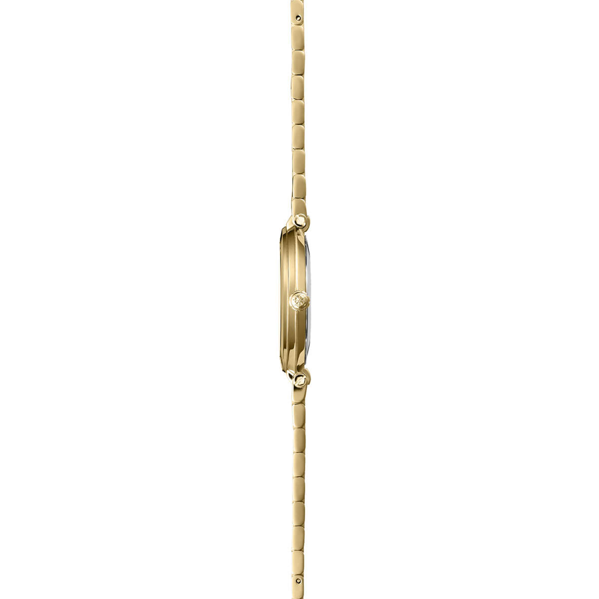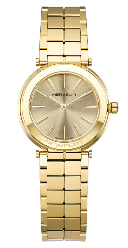 Monochromatické spojení šampaňského ciferníku s pouzdrem a náramkem pokrytým PVD vrstvou ve zlatém odstínu vytváří dojem jednotné, zářivé kompozice. Ušlechtilý lesk oceli, hra odlesků na kartáčovaném ciferníku a dokonalá symetrie designu odhalují hodinářské mistrovství značky Herbelin v nejsmyslnější podobě. Hodinky chrání odolné safírové sklíčko a o přesné zobrazení času se stará spolehlivý švýcarský quartzový strojek.