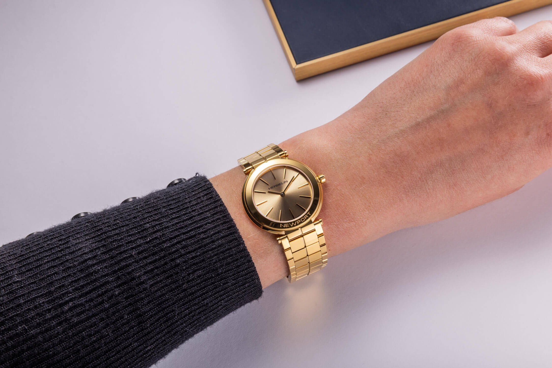 Model Newport 16922BP13 v tónech šampaňského zlata nejen podtrhuje styl – on jej přímo definuje. Výjimečně tenký profil, lesklý náramek a ciferník zářící jako hladina pod večerním světlem dělají z těchto hodinek nepostradatelného společníka při každé příležitosti, kdy záleží na vytříbeném vkusu. Skvěle se hodí k minimalistické bílé i výrazným barvám – jejich kouzlo spočívá v univerzálnosti a klidném sebevědomí. Herbelin nejsou hodinky, které sledují módu – ony ji určují.