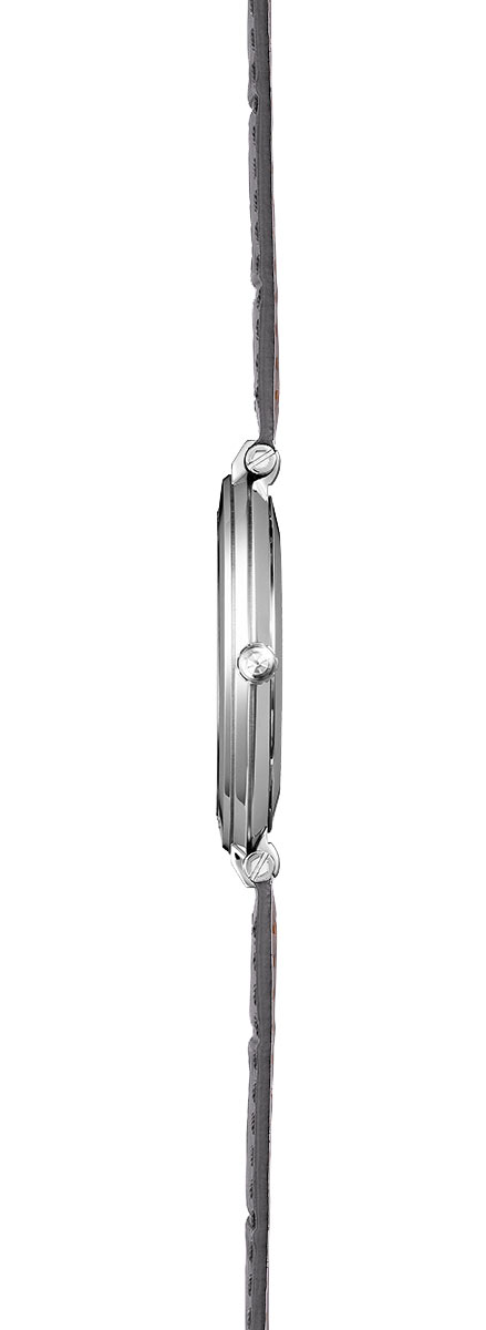 Díky ultra tenkému pouzdru o tloušťce pouhých 5,8 mm ohromují minimalistickým a elegantním designem, který vyzařuje moderní šarm. Pásek z kůže, napodobující exotickou kůži, v šedo-antracitové barvě doplňuje toto jedinečné hodinářské umění a dodává mu nadčasovou eleganci. Kombinace pohodlí a stylu, tento pásek se perfektně přizpůsobuje zápěstí a posiluje klasický vzhled modelu. Centrální spojení a korunka s vyrytým symbolem mořského kola, charakteristické prvky kolekce Newport, zdůrazňují jeho jedinečnou identitu.