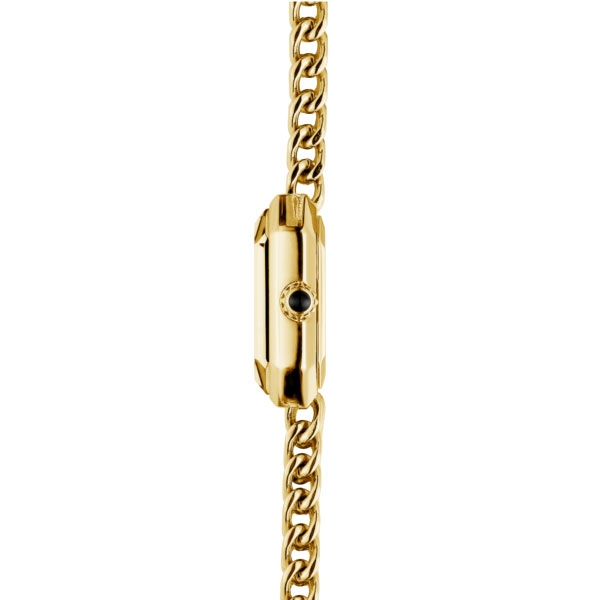 Elegantní dámské hodinky Herbelin Octogone jsou uloženy v leštěném ocelovém pouzdře 316L o rozměrech 22,22 mm x 22,22 mm, jehož charakteristický osmihranný tvar nabízí jedinečný design. V kombinaci s korunkou zdobenou černým onyxem s kabošonovým brusem dokonale podtrhuje noblesní charakter ciferníku. Na okouzlujícím ciferníku se pohybují krátké ukazatele typu Dauphine, které jsou dokonale sladěny s diskrétními ukazateli hodin. Ciferník je vyroben z bílé perleti. Tento zcela diskrétní set zaujme svým sofistikovaným vzhledem. Zobrazovací systém je chráněn safírovým sklem odolným proti poškrábání a křišťálově čistým.