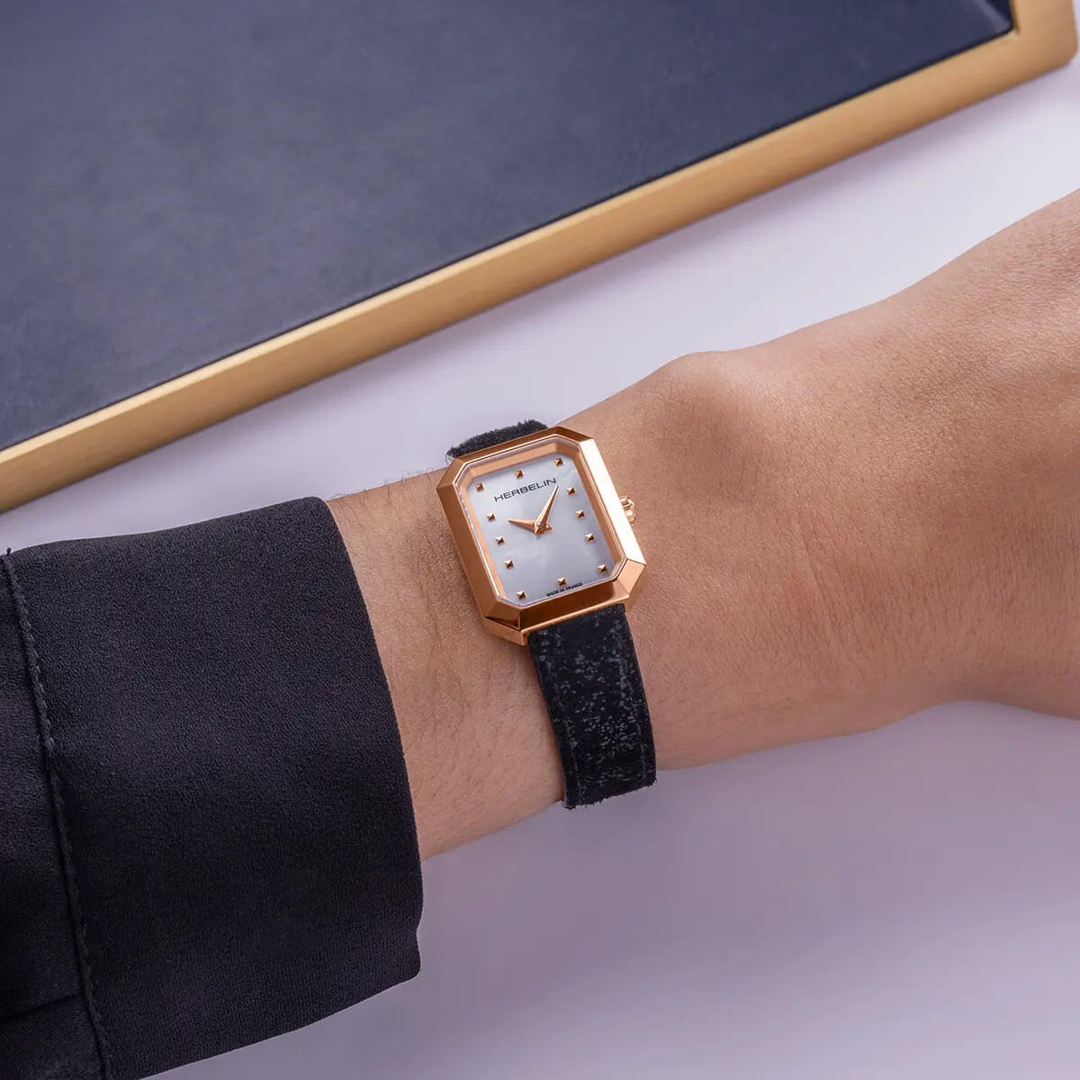 Obdélníkový tvar pouzdra dodává hodinkám osobitý vzhled, který přitahuje pozornost inovativním přístupem k tradici. Obálka je nabízena ve velikosti 20,40 mm x 26,40 mm v růžovém zlatě PVD. Celá konstrukce hodinek je zavěšena na rafinovaném, pozlaceném šperkařském náramku, který jim dodává nejen eleganci, ale také zajišťuje pohodlí při celodenním nošení. Celá konstrukce je uzavřena ocelovým krytem.