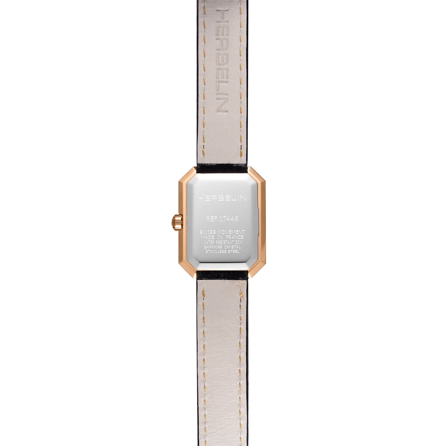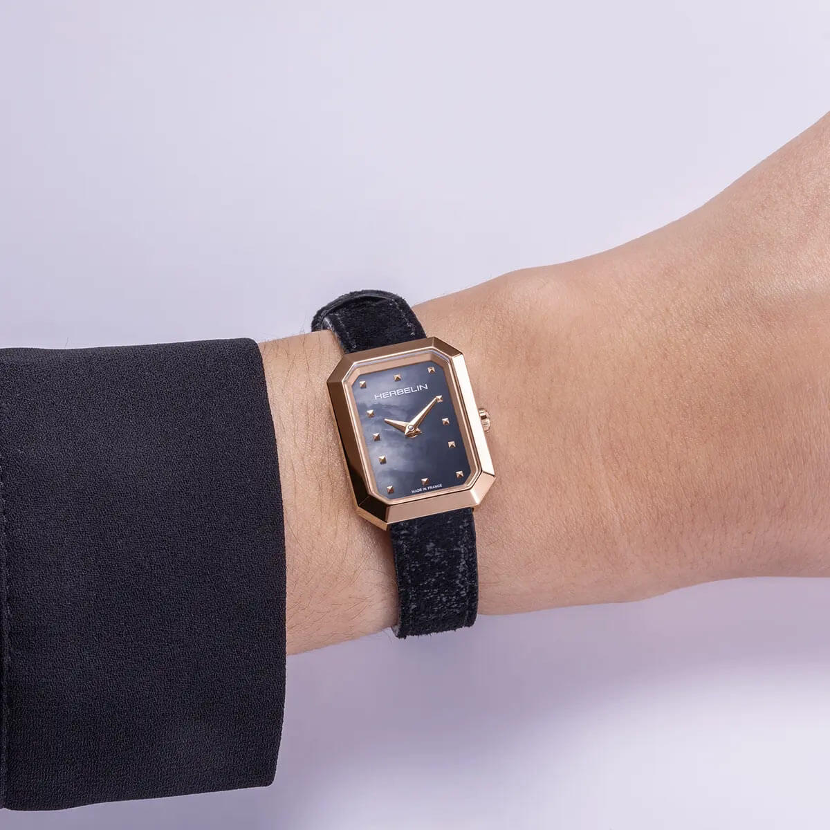 Mimořádnou propracovanost tohoto modelu podtrhuje ciferník z tmavé perleti. Díky této neobvyklé kombinaci vyzařují francouzské hodinky Herbelin 17446PR49 jemnost a luxus. Perleťové odlesky ciferníku se mění v závislosti na dopadajícím světle a vytvářejí tak fascinující světelné hry. Perleťový ciferník se vyznačuje jedinečným vzorem, každý je jiný. Čas je indikován dvěma ručičkami dýky spárovanými s bodovými indexy. Vše kryje tvrdé a těžko poškrábatelné safírové sklíčko. Safírové sklo dodává tomuto modelu pevnost, která zaručuje bezpečnost unikátního ciferníku.