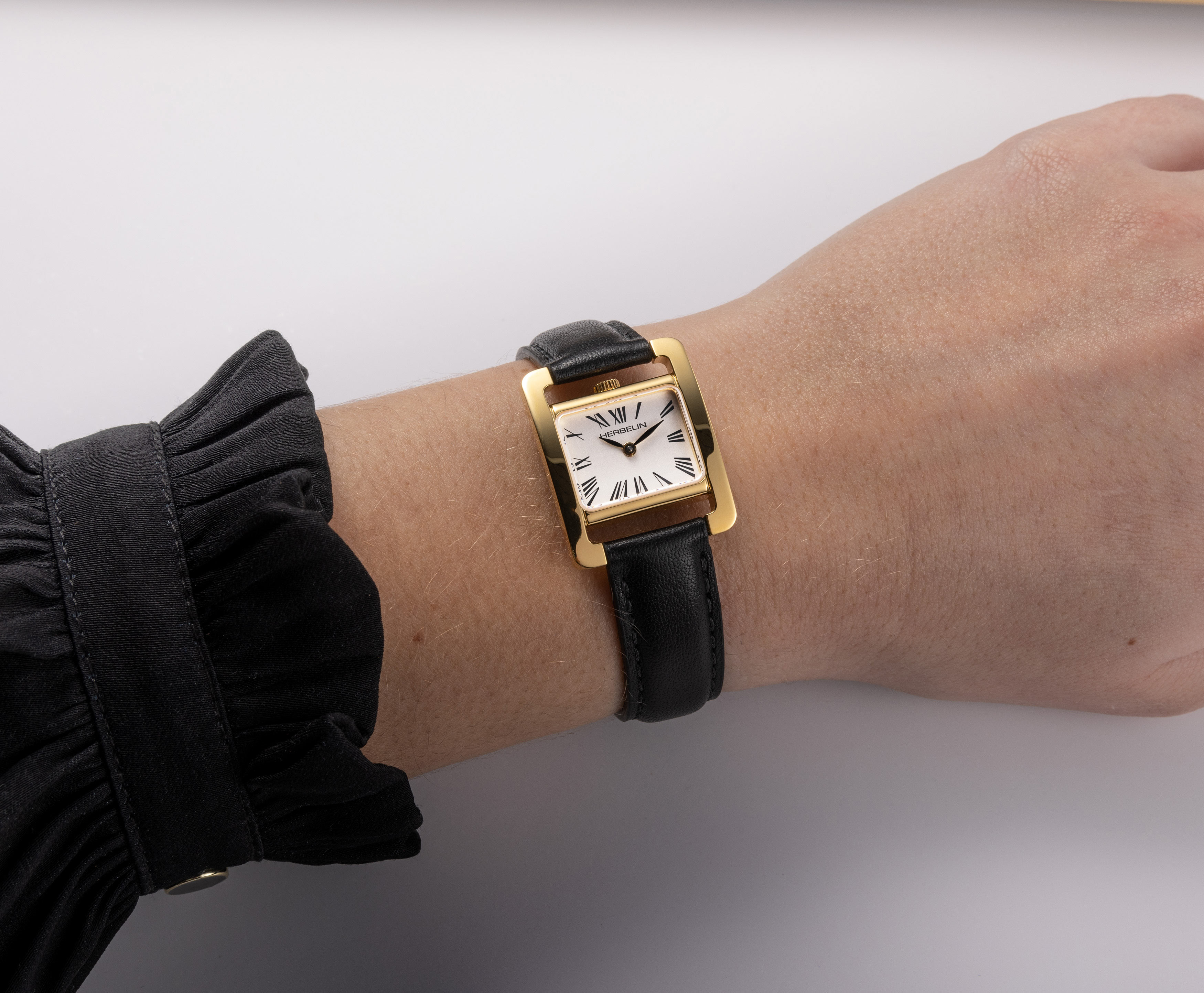 Obdélníkové ocelové pouzdro v elegantní zlaté barvě zaujme smyslem pro detail a dodává hodinkám jedinečný styl. Jeho minimalistický tvar dokonale ladí s klasickým černým páskem z měkké, vysoce kvalitní kůže, který zajišťuje nejen pohodlí, ale také zdůrazňuje šik vzhled tohoto modelu. Design hodinek Herbelin byl vytvořen s ohledem na ženské zápěstí – díky jemné linii a ergonomickým tvarům perfektně padnou při nošení. Jedná se o hodinky, které přitahují pozornost každý den a jsou dokonalým doplňkem každodenního i elegantnějšího stylu.
