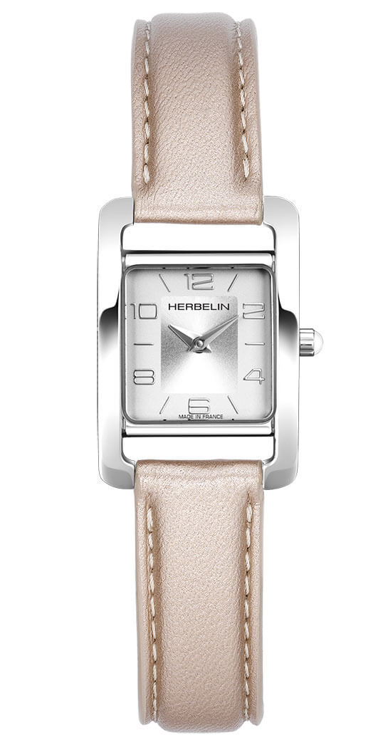 Pouzdro hodinek je vyrobeno z odolné nerezové oceli, která mu dodává výjimečný lesk a odolnost proti poškození. Obdélníkový tvar dodává jedinečný charakter a odlišuje jej od ostatních modelů. Zadní strana pouzdra je ocelový kryt, který uzavírá celou konstrukci. Přírodní kožený řemínek v decentní béžové barvě v kombinaci s hodinkami Herbelin zajišťuje nejen elegantní vzhled, ale také pohodlí při nošení. Díky preciznímu prošívání a měkkému materiálu hodinky perfektně padnou na zápěstí.