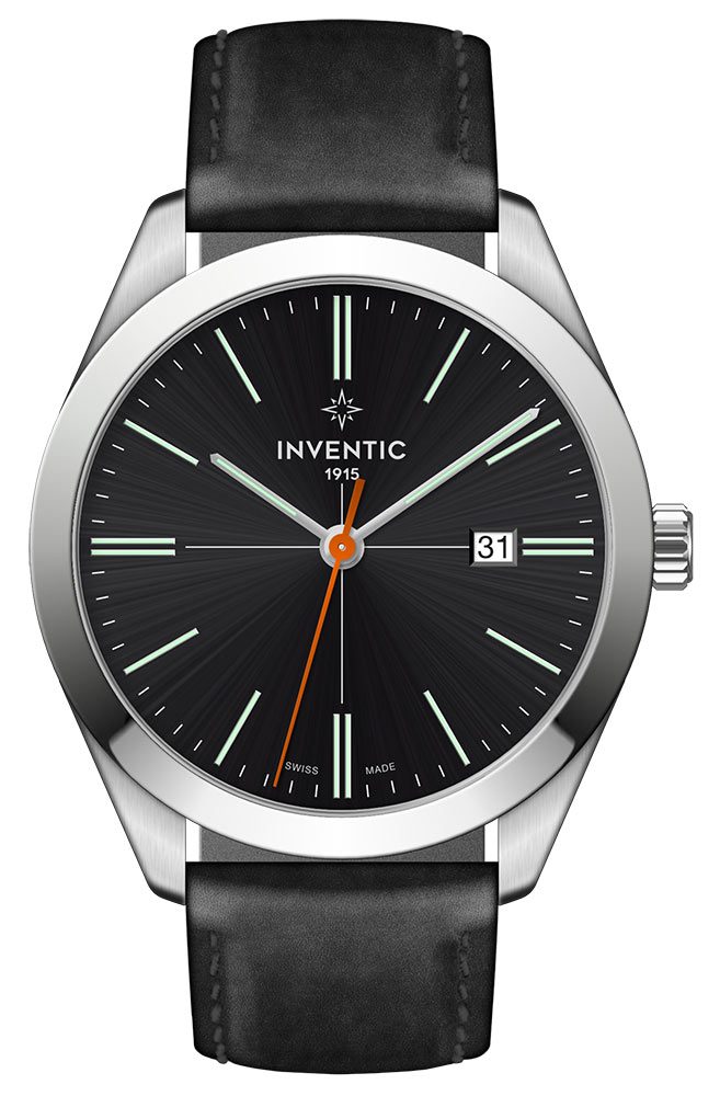 Elegantní černý ciferník obsahuje minimalistické lineární indexy svítící ve tmě, minutovou a hodinovou ručku a oranžovou vteřinovou ručku. Jeho povrch je zakončen sunburstem, díky čemuž se na něm rodí zajímavý vzor, který na světle působí dojmem rozprostírajícím se po celé ploše. Navíc je zde diskrétní, ale čitelné datumové okénko ve 3 hodiny. Celý byl překryt minerálním sklem typu K1. Toto sklo je hybridem konvenčního minerálního skla a safírového skla. Jde o materiál , který poskytuje vysokou odolnost proti poškrábání a zároveň proti rozbití .