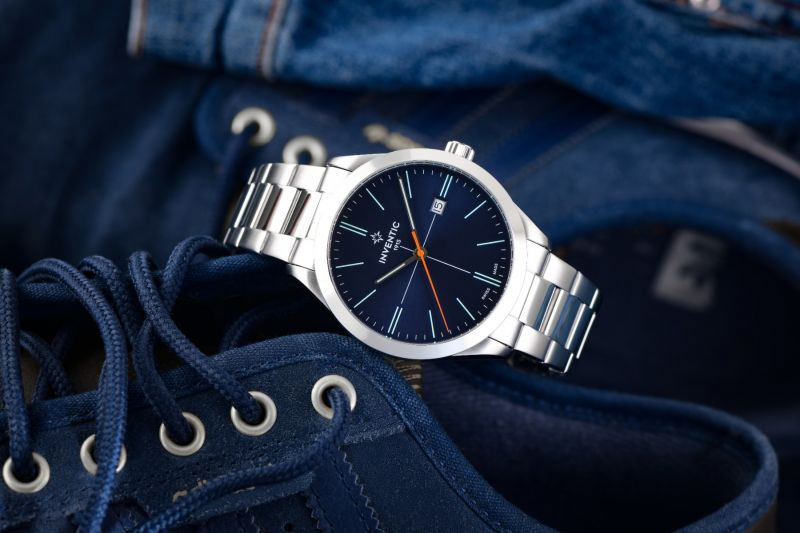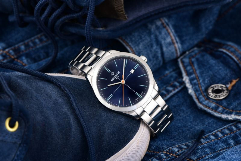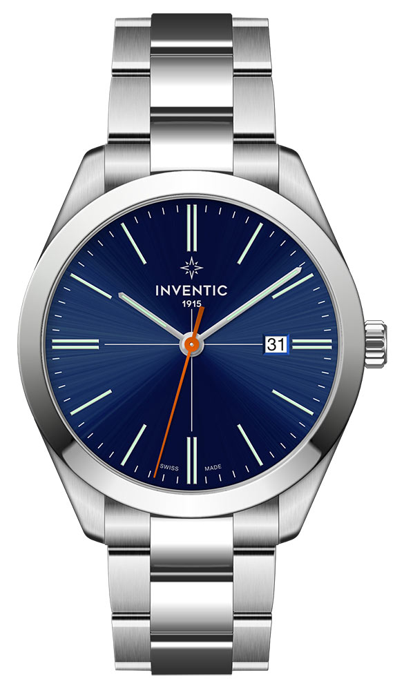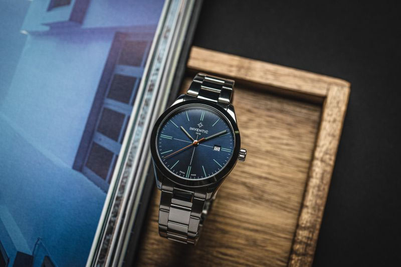 Elegantní modrý ciferník obsahuje minimalistické lineární indexy svítící ve tmě, minutovou a hodinovou ručku a oranžovou vteřinovou ručku. Jeho povrch je zakončen sunburstem, díky čemuž se na něm rodí zajímavý vzor, který na světle působí dojmem rozprostírajícím se po celé ploše. Navíc je zde diskrétní, ale čitelné datumové okénko ve 3 hodiny. Celý byl překryt minerálním sklem typu K1. Toto sklo je hybridem konvenčního minerálního skla a safírového skla. Jde o materiál , který poskytuje vysokou odolnost proti poškrábání a zároveň proti rozbití .