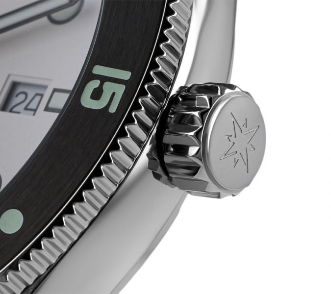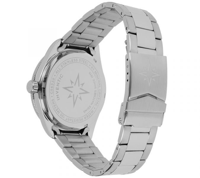 Pouzdro modelu Inventic C56335.41.29 je vyrobeno z odolné nerezové oceli. Jeho průměr měří 42 milimetrů . Boční strana má elegantní lesklý povrch a uši jsou kartáčované. Víko pouzdra je šroubované. Třída vodotěsnosti byla výrobcem označena na 100 metrů , což vám umožňuje v hodinkách volně plavat. Stříbrný ciferník obsahuje hodinové indexy a ručičky charakteristické pro diverské hodinky, které byly pokryty luminiscenční vrstvou. Ve 3 hodiny je minimalistické datumové okno. Povrch ciferníku je opatřen matnou vrstvou. Celý je chráněn praktickým minerálním sklem typu K1 . Tento typ skla je odolný proti poškrábání, skoro jako safír, a zároveň není tak náchylný k rozbití díky vyšší pružnosti.
